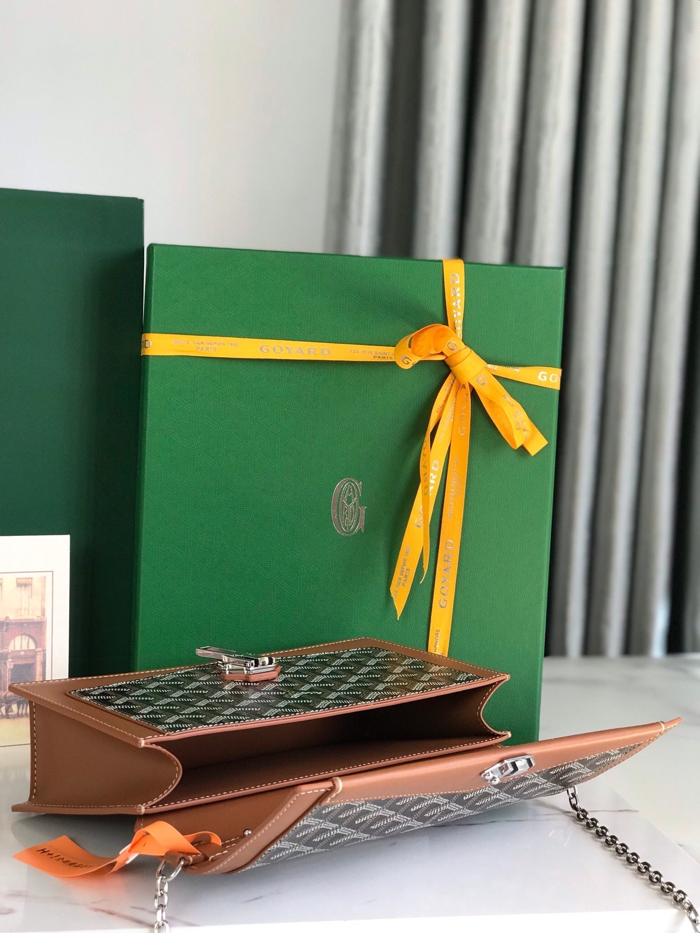 HIRONDELLE BAG 25 IN GREEN LAMBSKIN AND GOYARDINE CANVAS