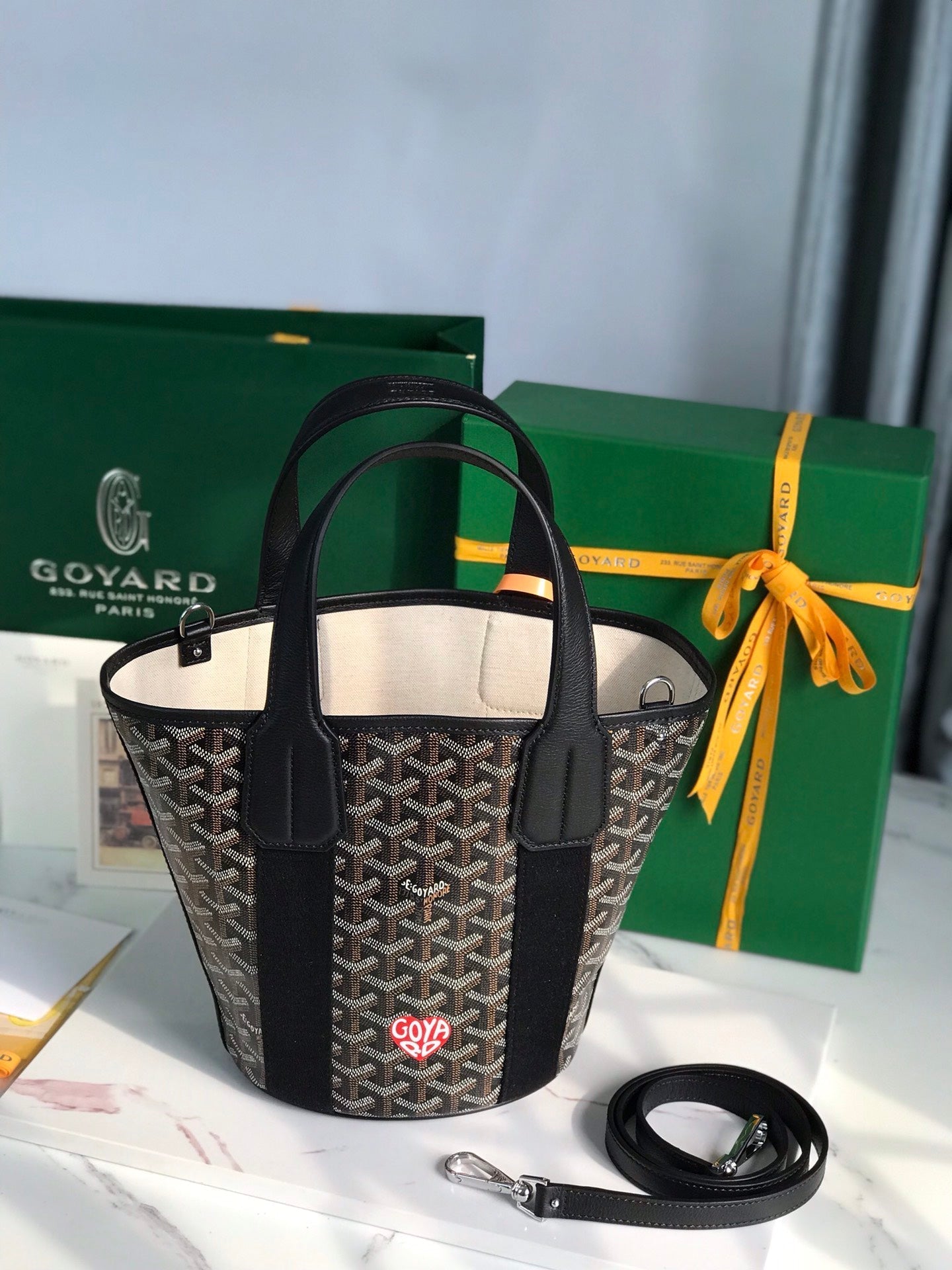 HIRONDELLE BAG 25 IN BLACK LAMBSKIN AND GOYARDINE CANVAS