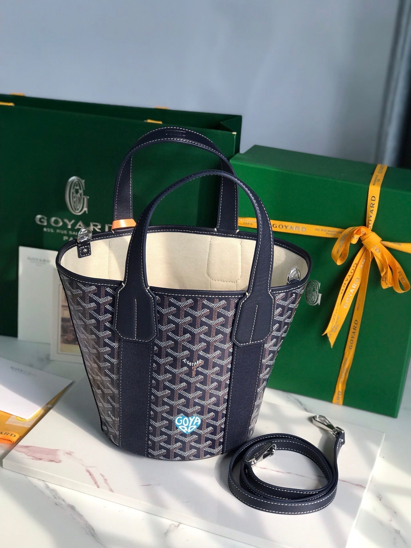 HIRONDELLE BAG 25 IN NAVY BLUE LAMBSKIN AND GOYARDINE CANVAS