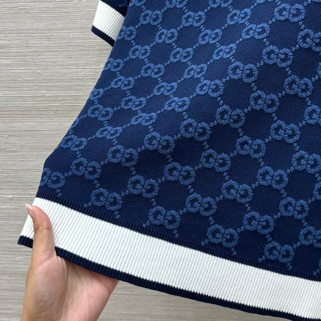 Gucci 25 Knitted Round Neck Short-sleeved Top Dark Blue Wool