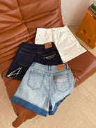 Gucci 25 Logo Embroidered Rolled-hem Denim Shorts Cotton