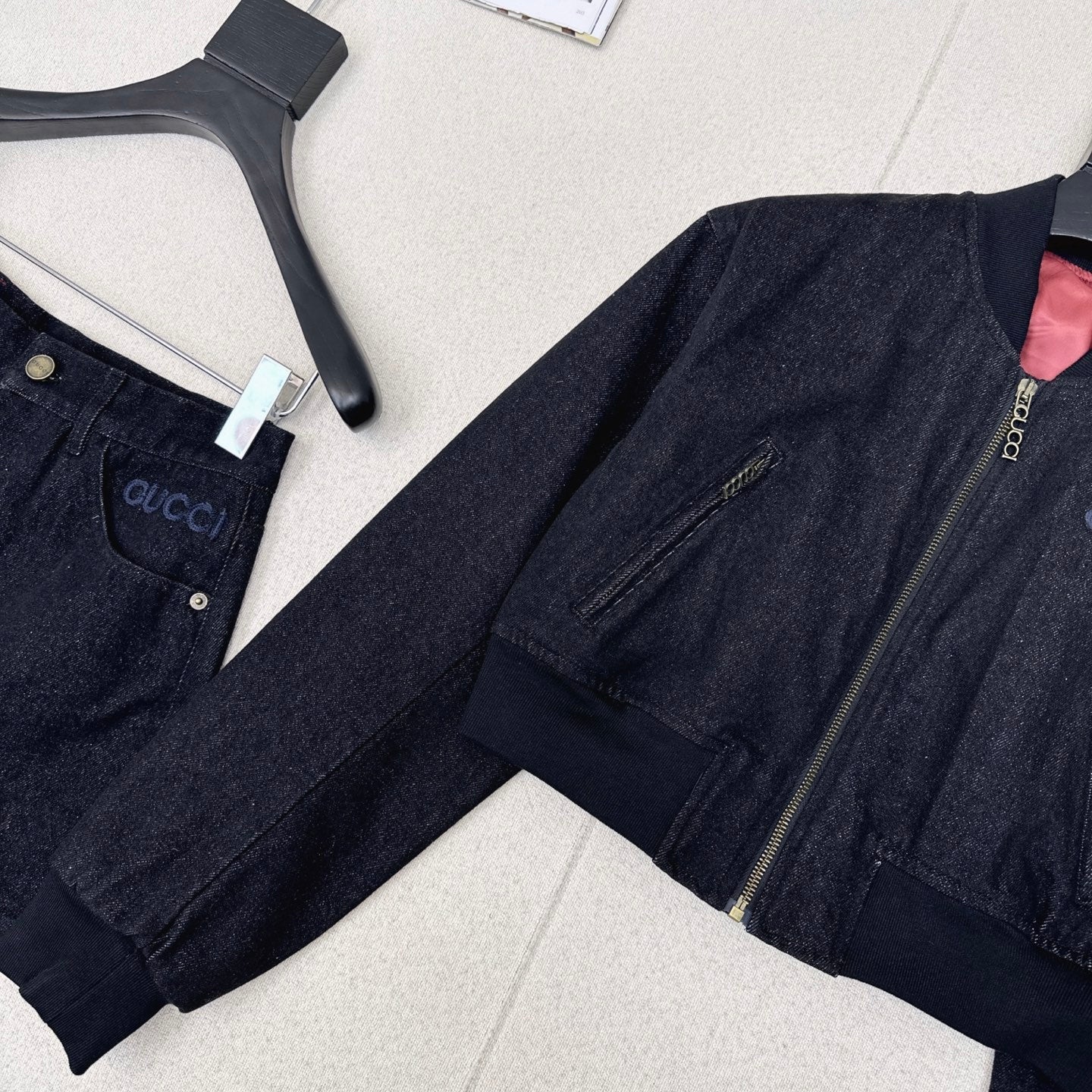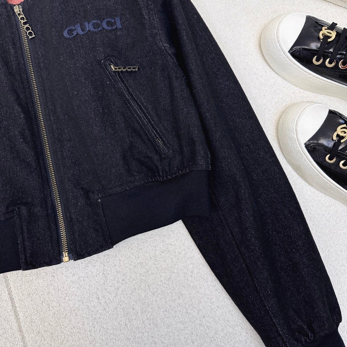 Gucci 25 Short Stand-up Collar Jacket Dark Blue Cotton 596441