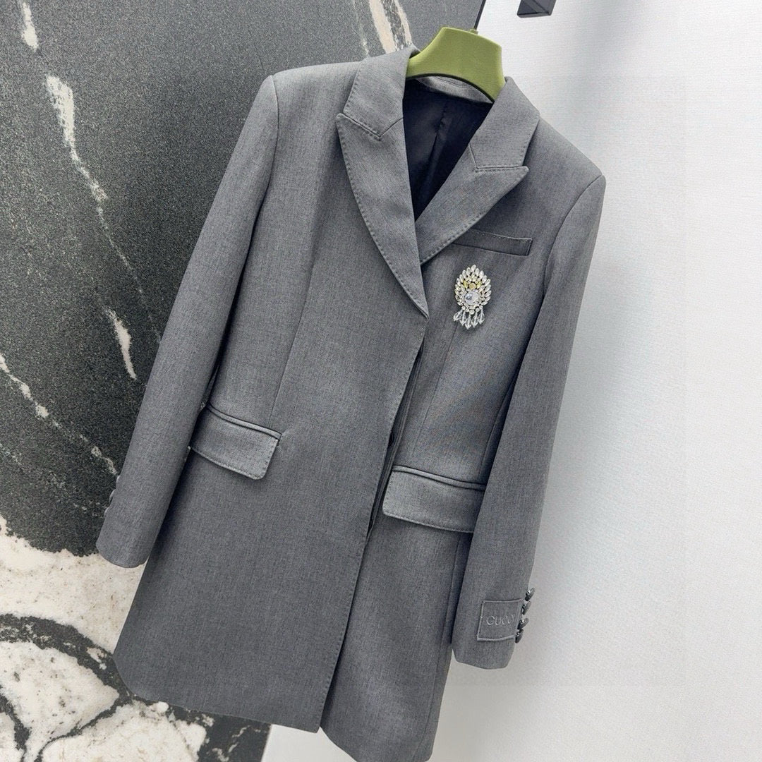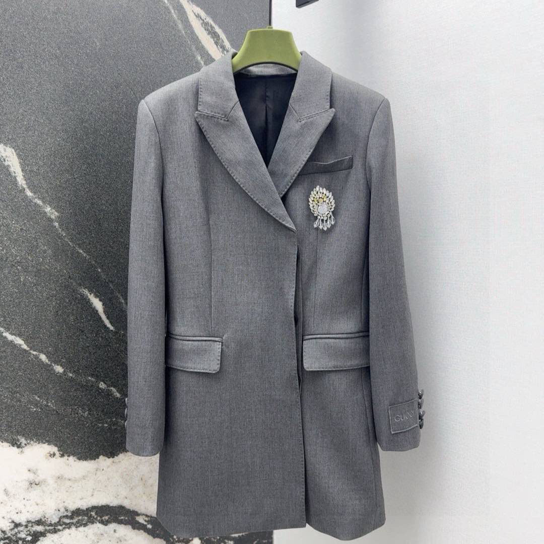 Gucci Suit Jacket Gray Polyester Fiber