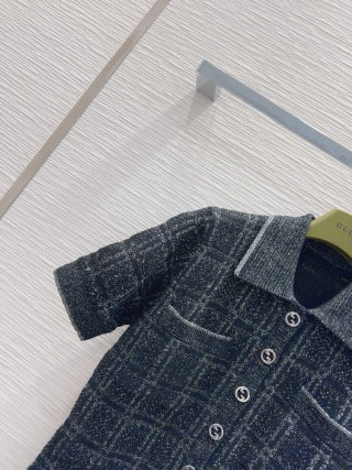 Gucci Knitted Short Sleeve T-shirt Navy Blue Cotton