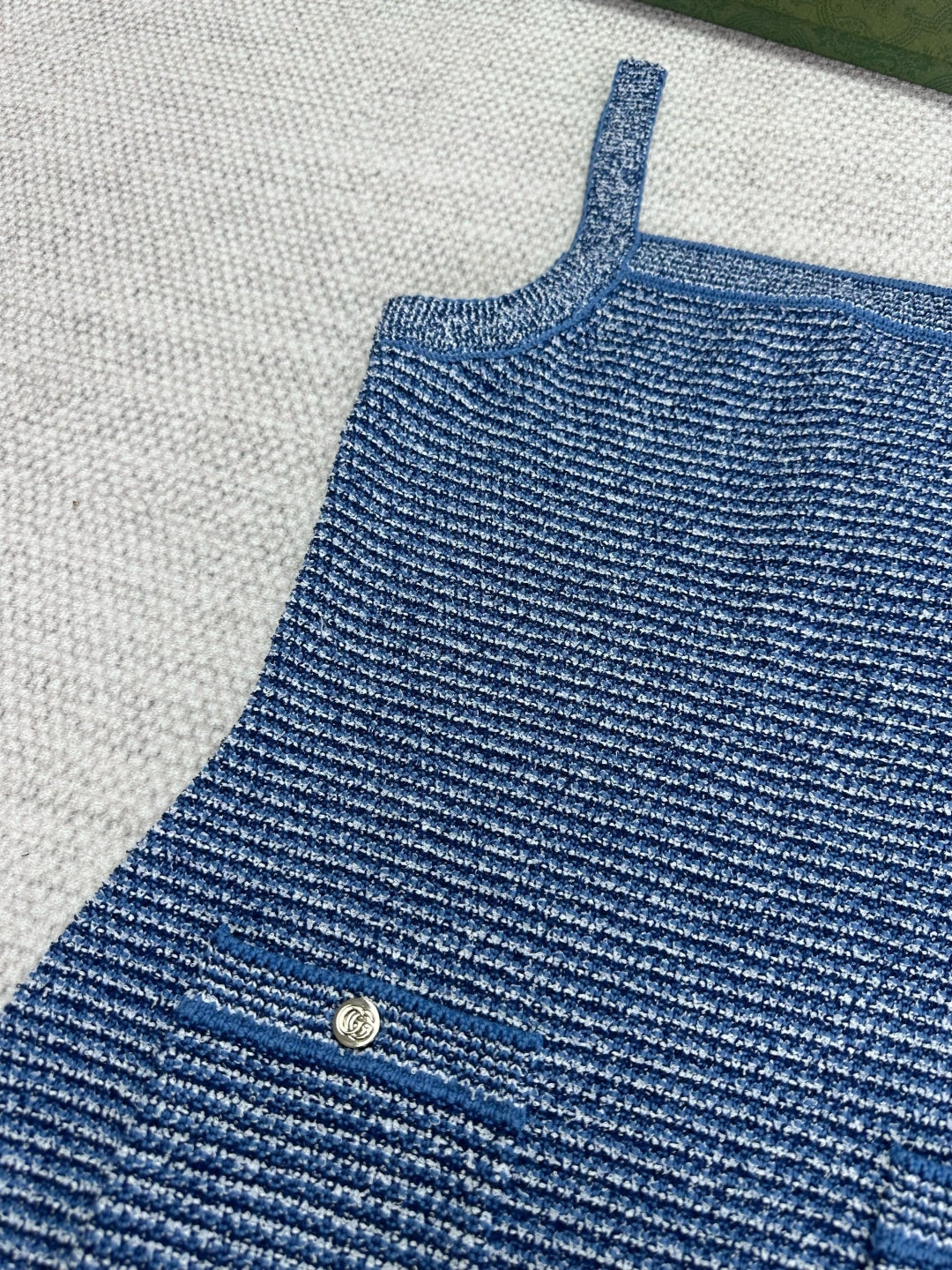 Gucci Knitted Polo Short-sleeved Top Blue Wool