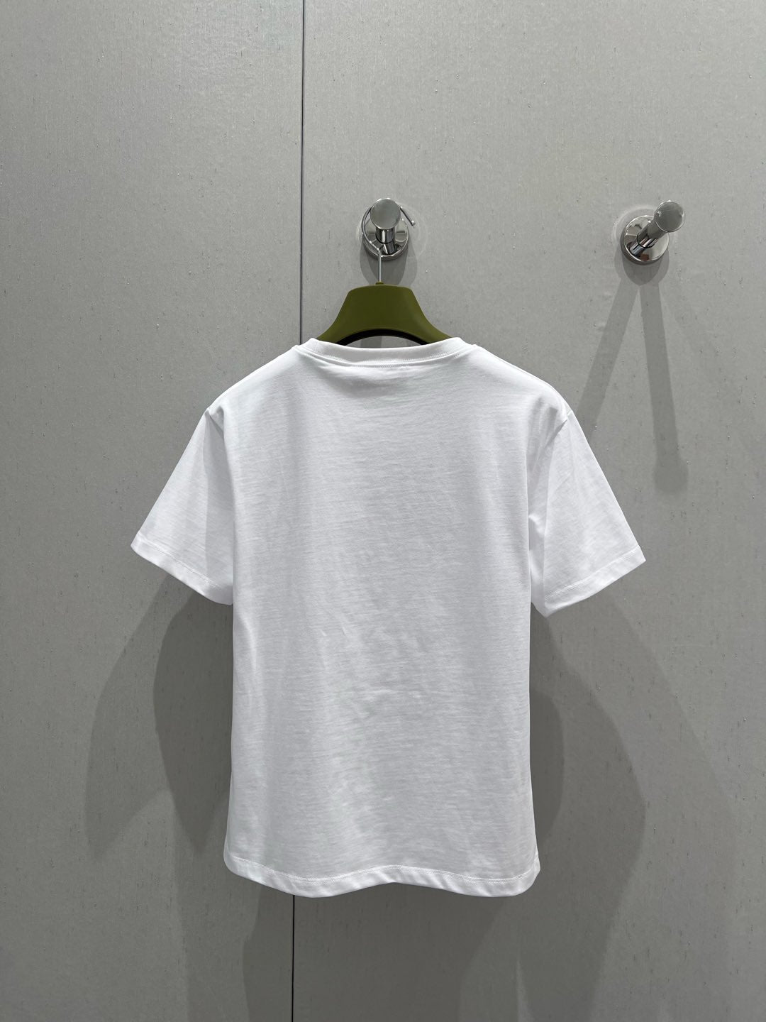 Gucci Embroidered Short Sleeves T-shirt White Blue Cotton