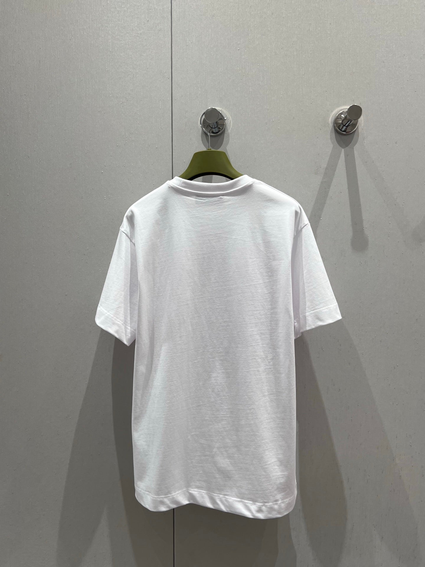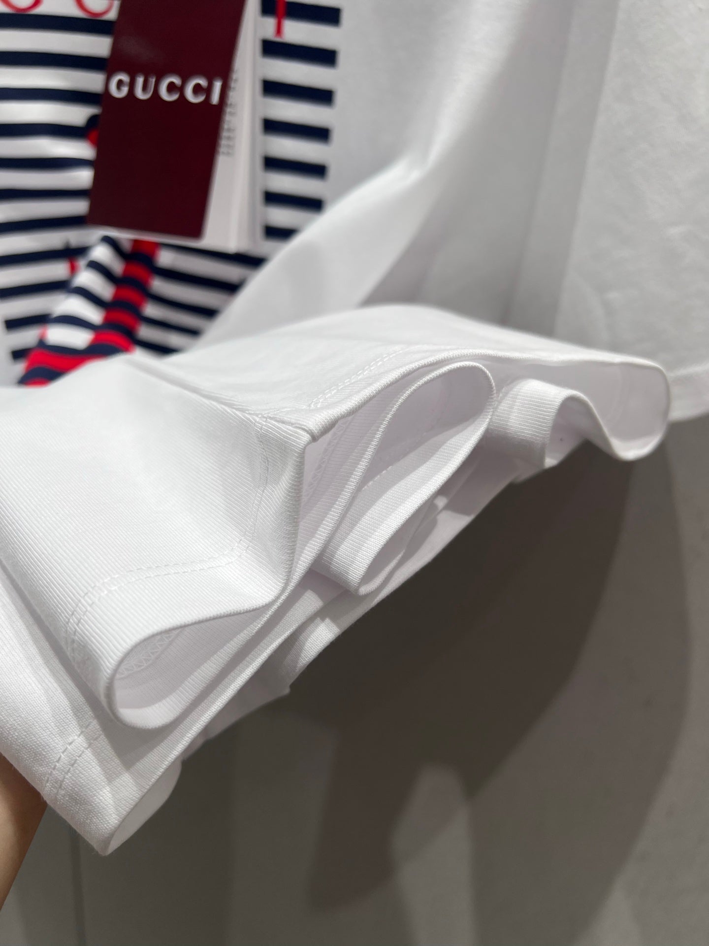 Gucci 2025 Print Short Sleeve T-shirt White Green Red Cotton