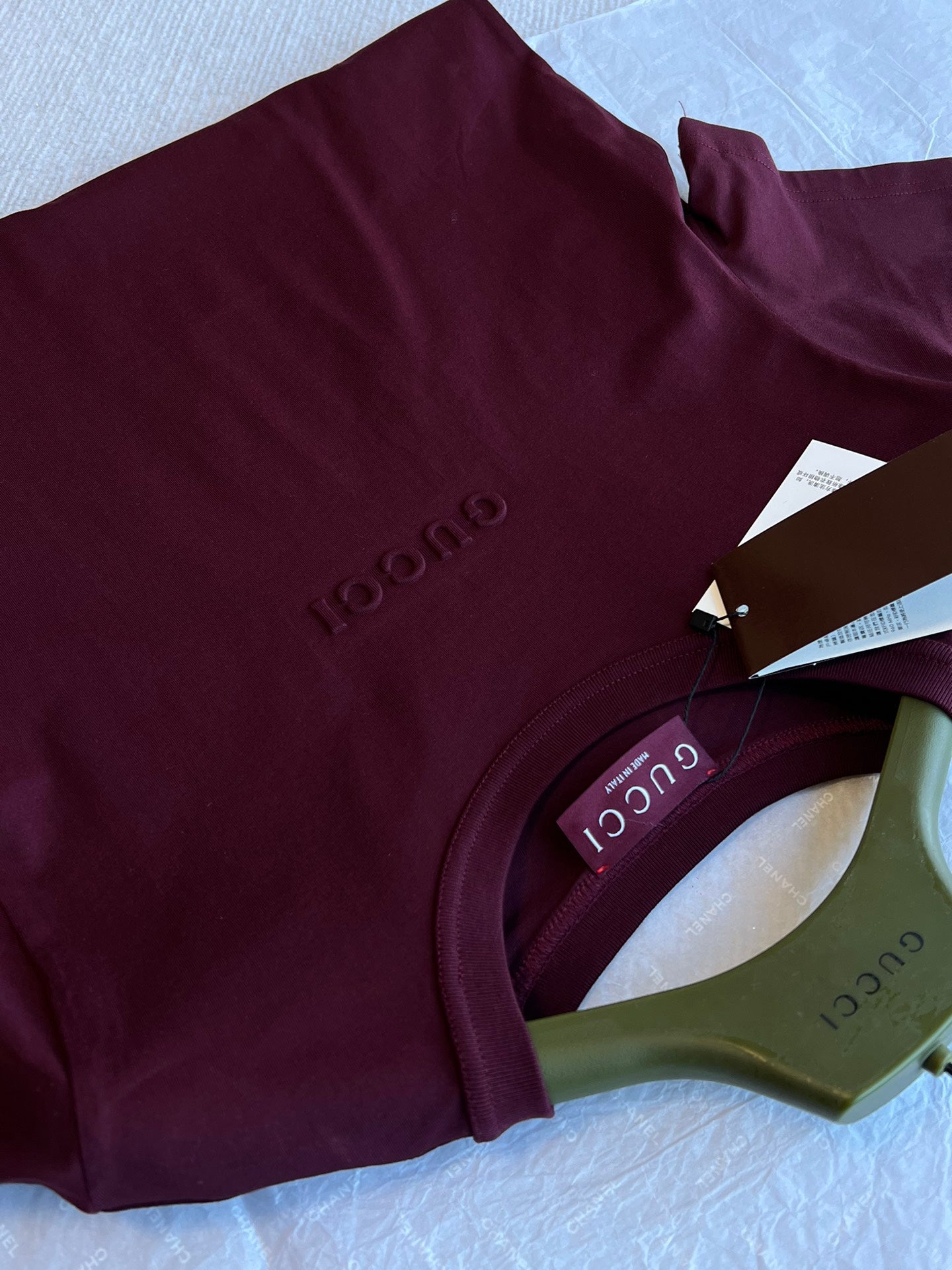 Gucci 25 Three-dimensional Embossed Letter Short-sleeved Top Red Cotton