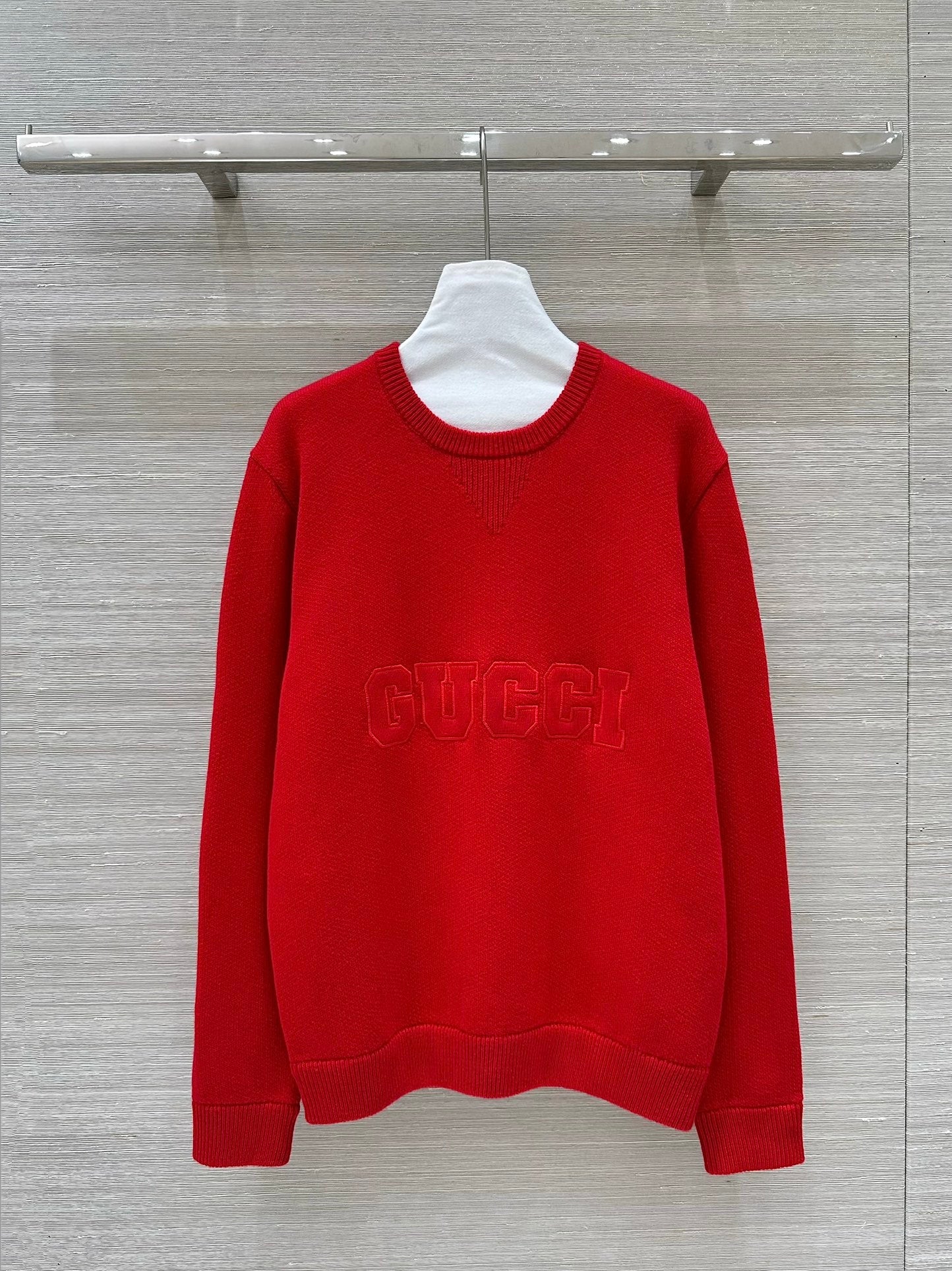 Gucci 25 Embroidered Pullover Sweater Red Wool