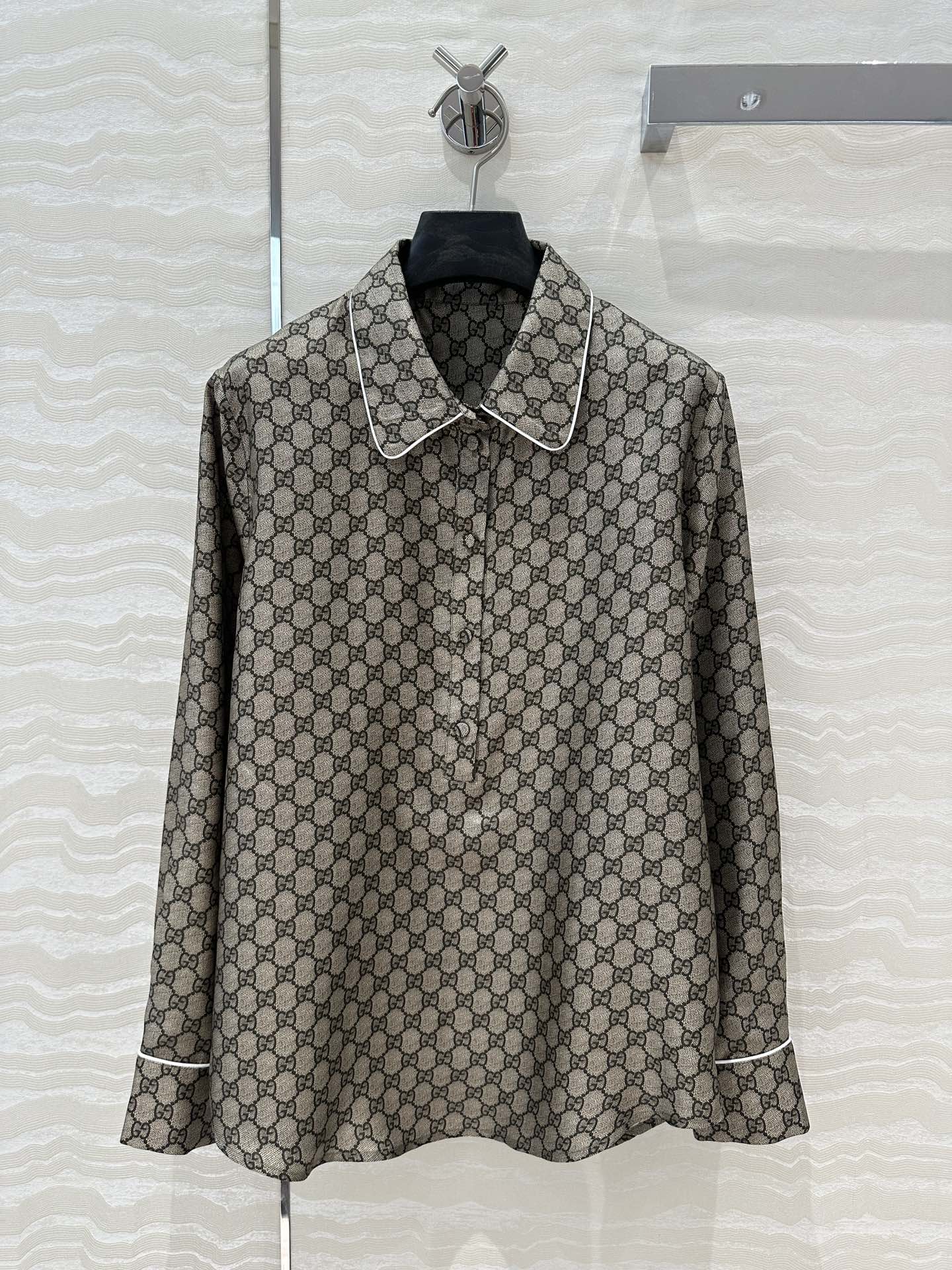 Gucci 2025 Shirt Camel and Ebony Polyester Fiber