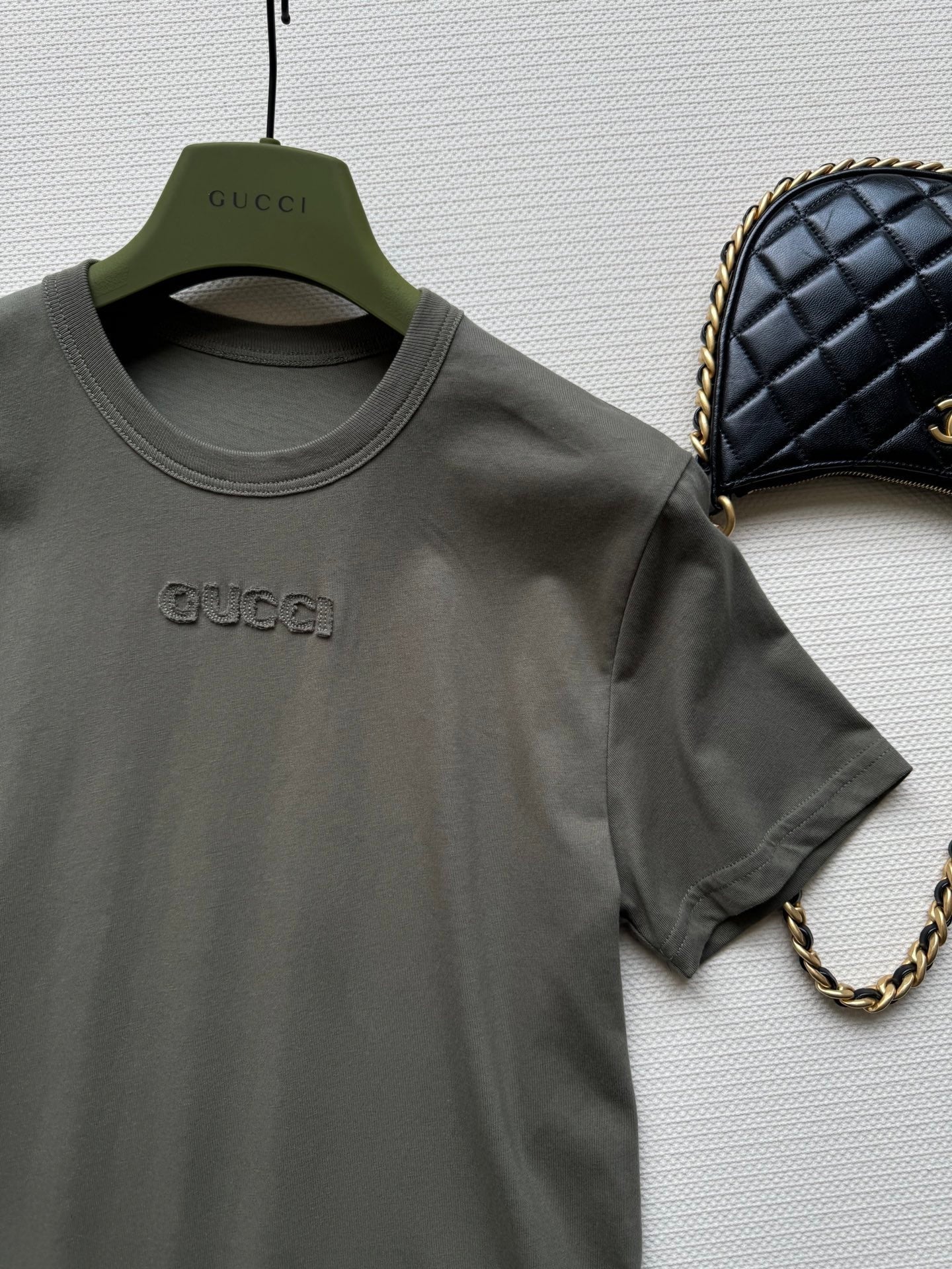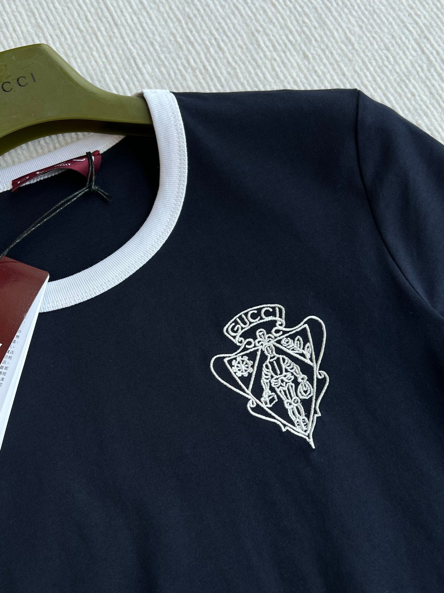 Gucci 2025 Embroidered Short-sleeved T-shirt Cotton 212086