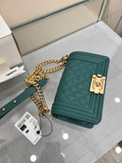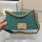 BOY BAG SMALL 20 EVER GREEN CAVIAR GOLD HARDWARE