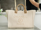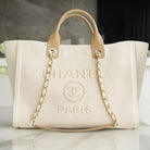 CC LARGE TOTE 39 LIGHT BEIGE CANVAS PEARL LOGO
