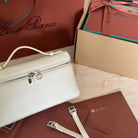 EXTRA POCKET L19 IN WHITE GRAINED CALFSKIN WITH SILVER HARDWARE