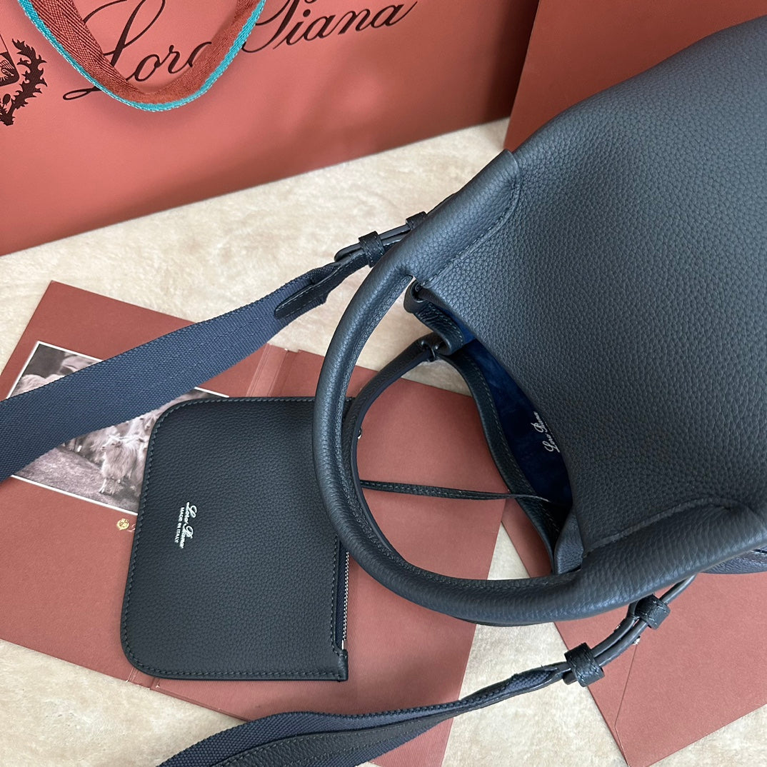 SMALL 21 BALE BAG IN BLACK GRAINED CALFSKIN WITH SILVER HARDWARE