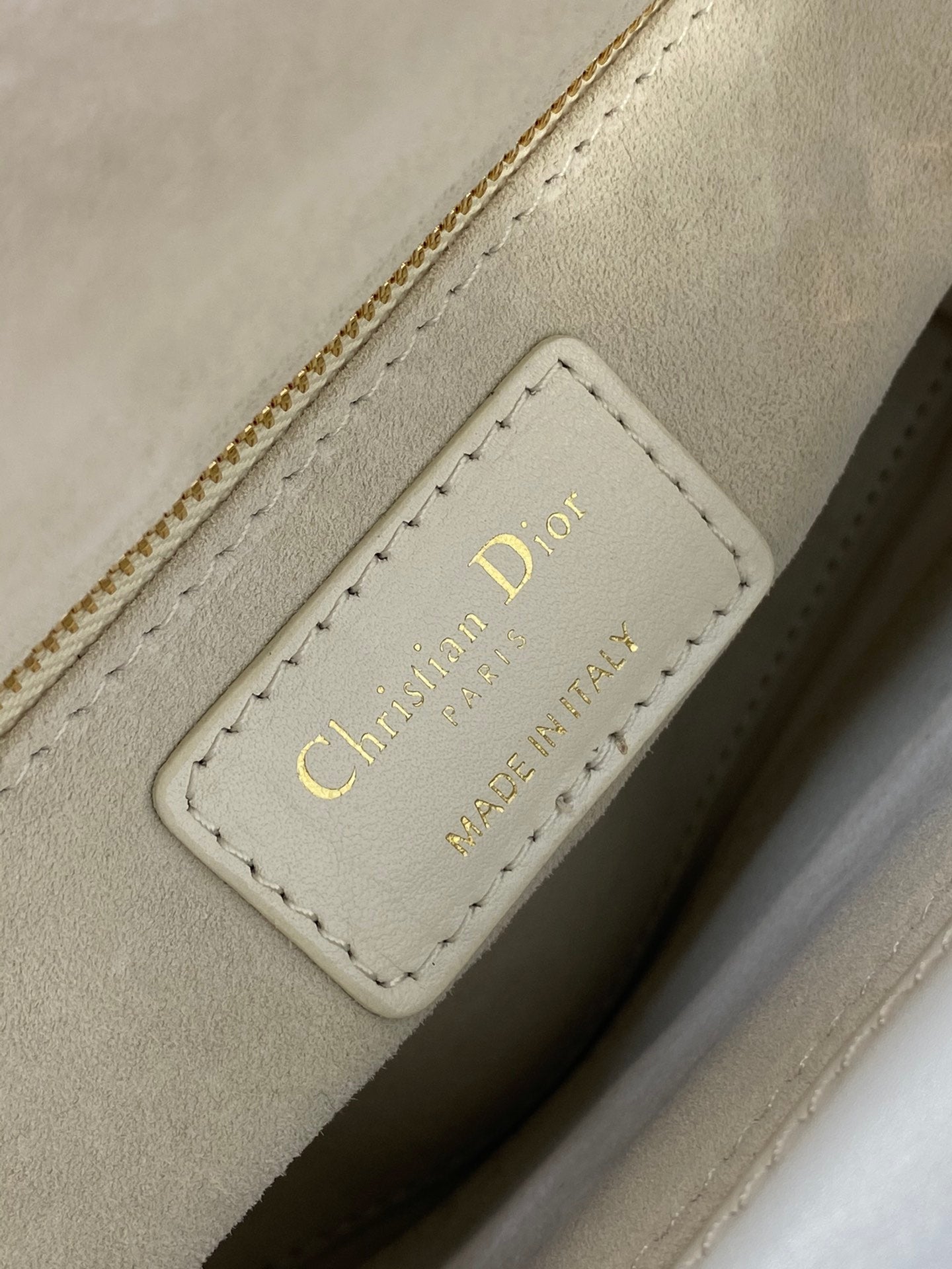 CD Lady Bag 20cm White Lambskin Light Gold Hardware