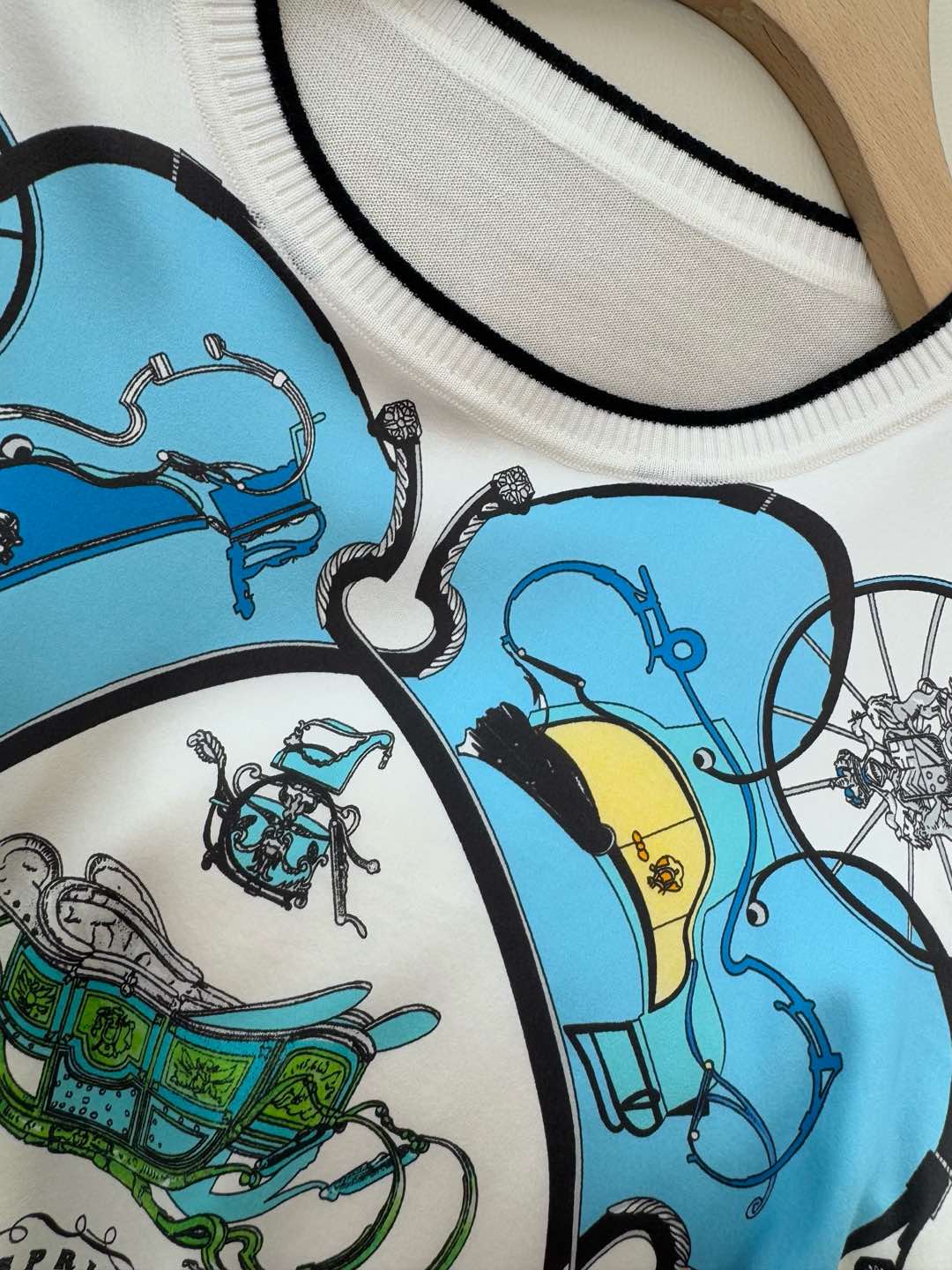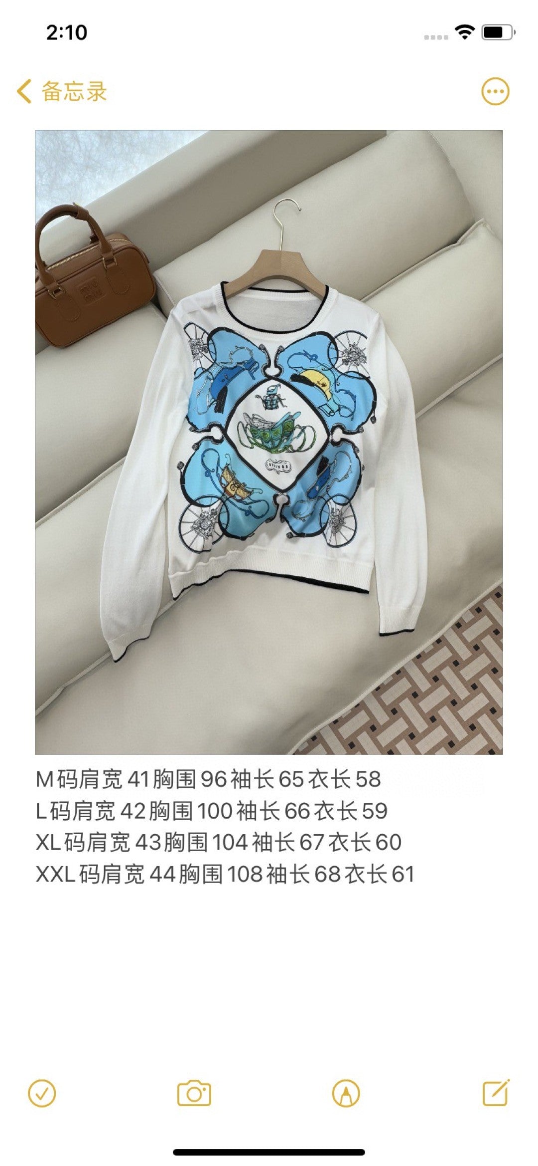 Hm Long Sleeve Knit Sweater White Blue Silk