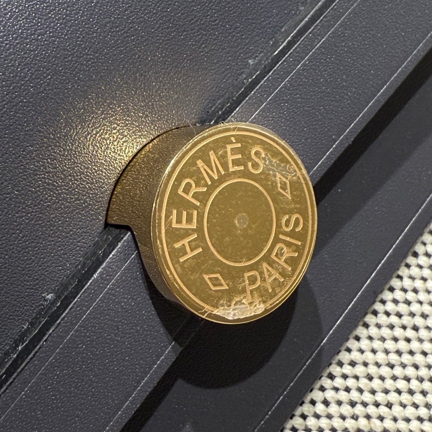 HM Mini Herbag Gold Buckle 20 Beige Grey Canvas and Hunter Cowhide 243285
