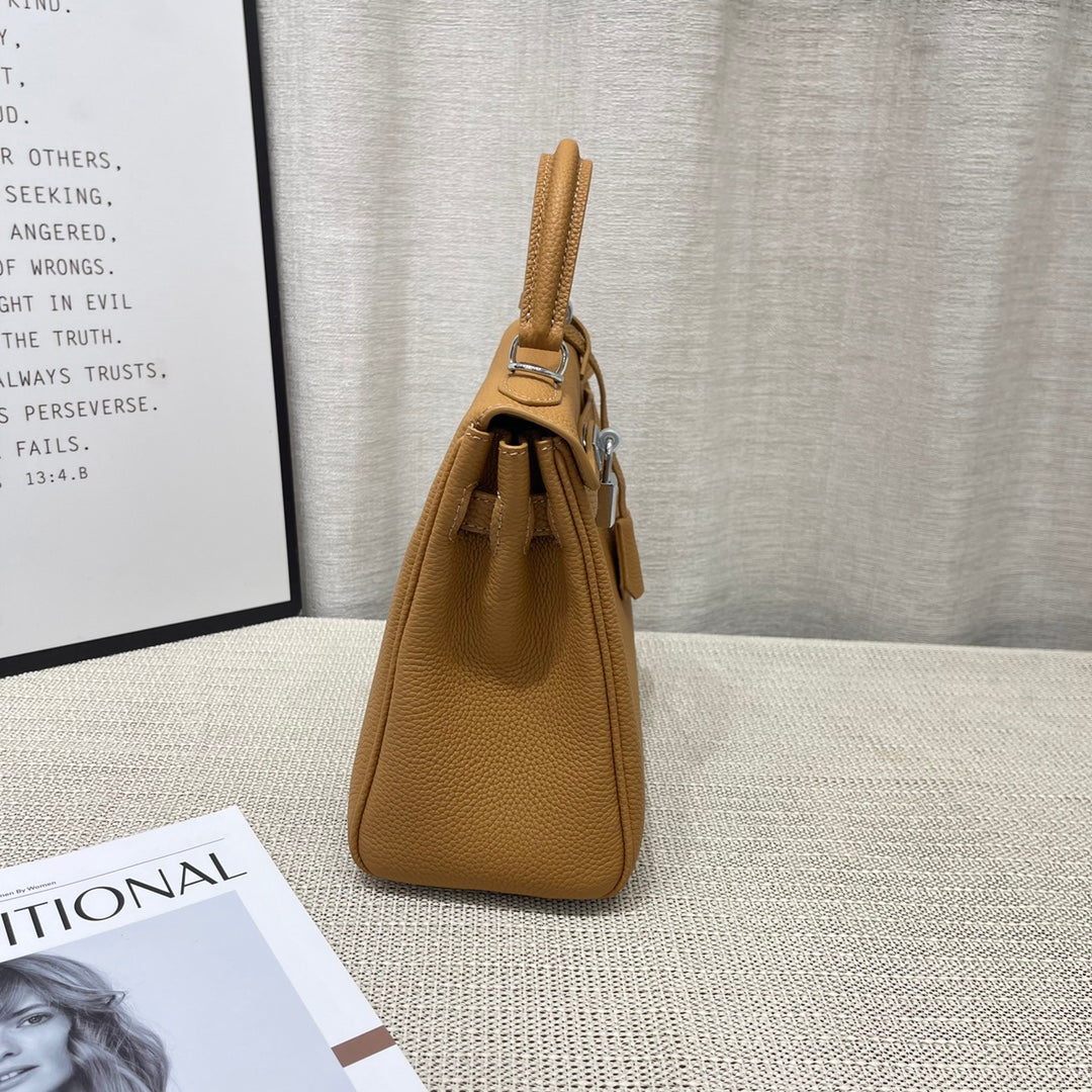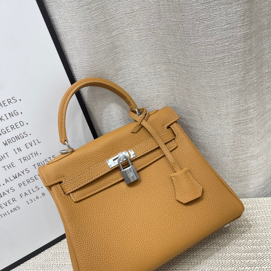 HM Kelly 25cm Brown Togo Leather Silver Hardware