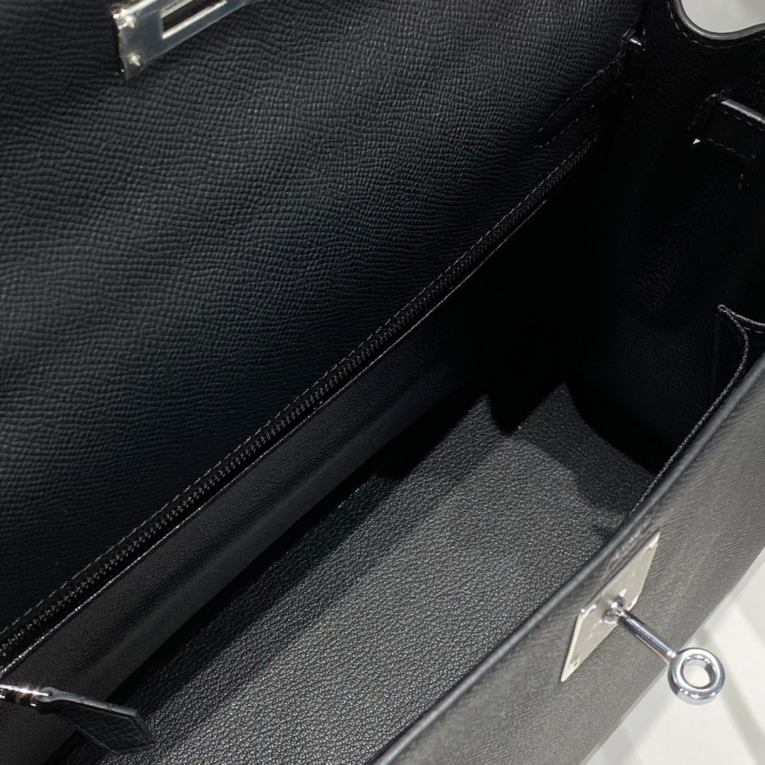 Hermes Black Epsom Leather Kelly 32 Top Handle Bag 249758