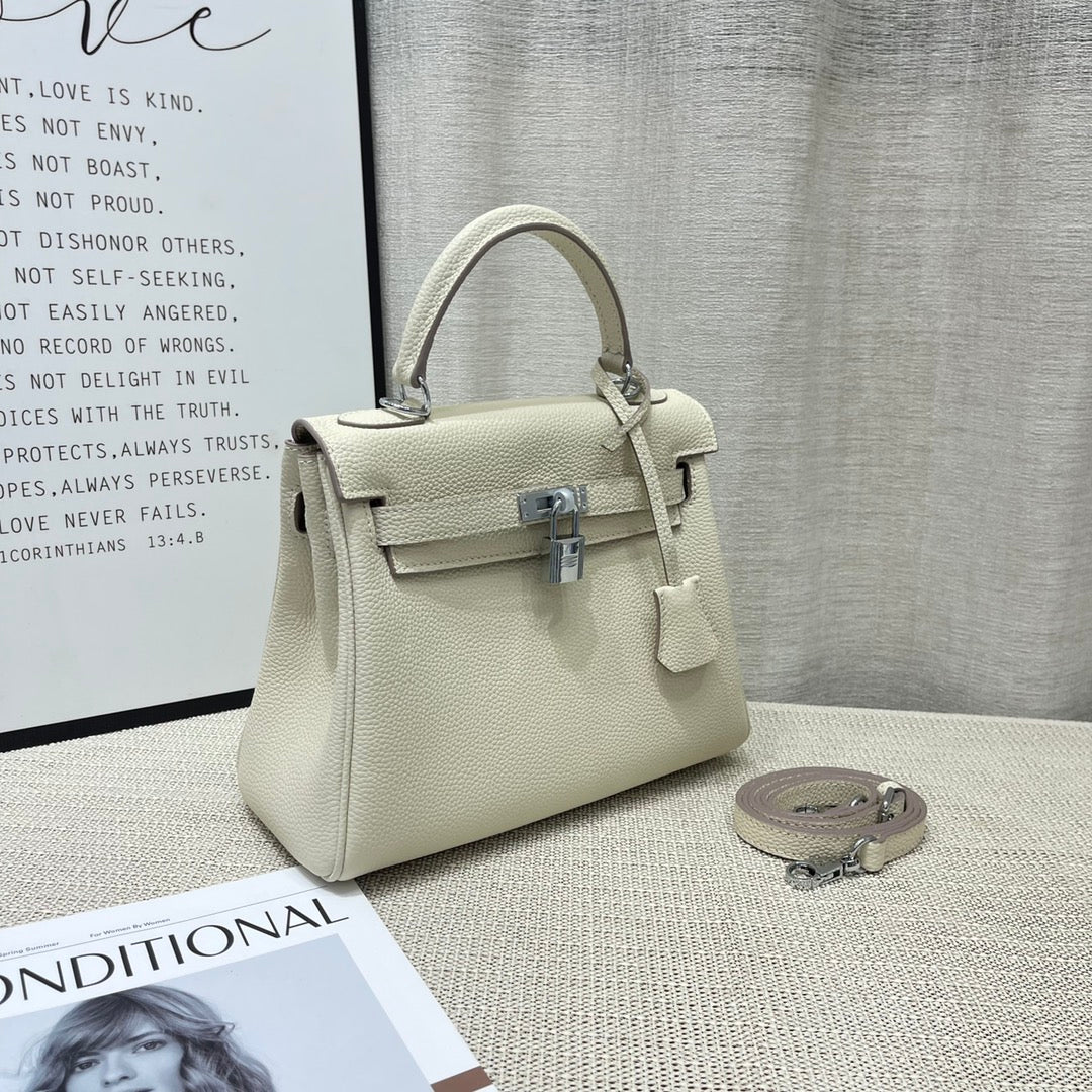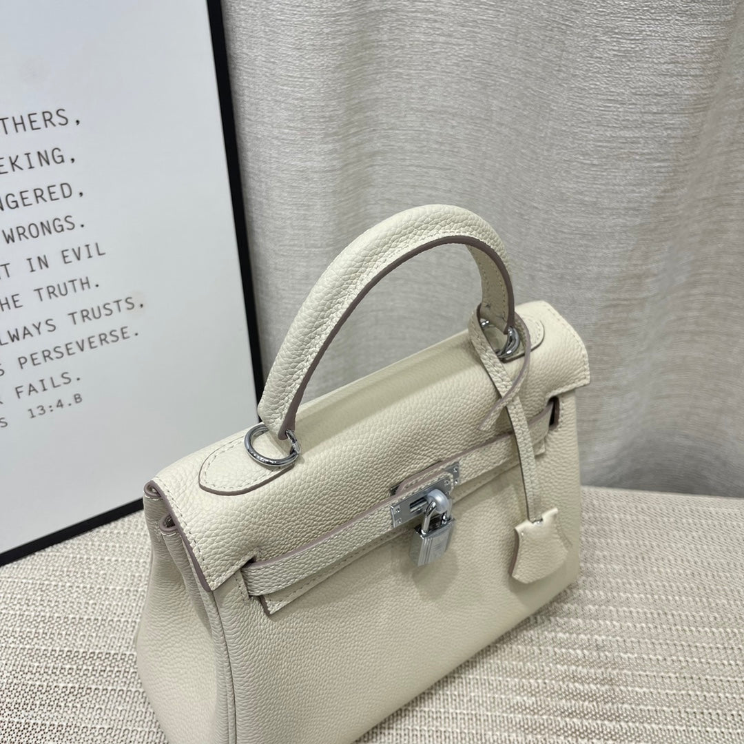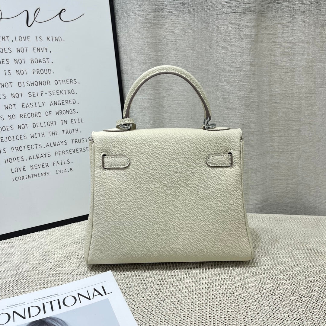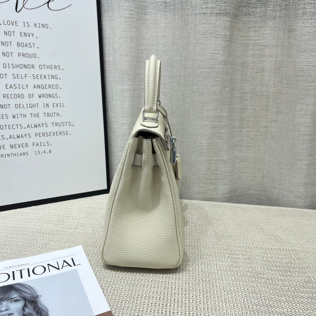 HM Kelly 25cm Cream Togo Leather Silver Hardware