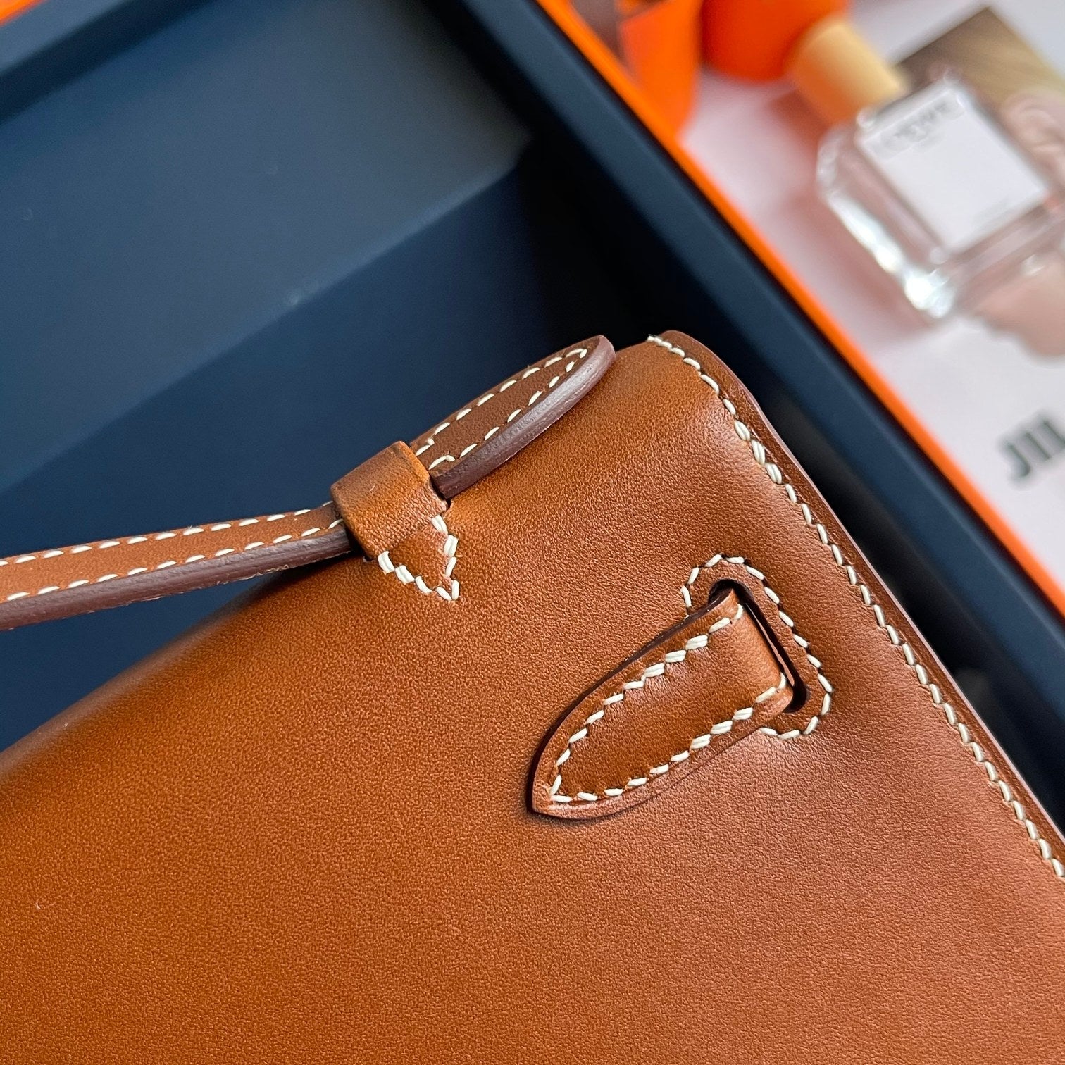 HM Kelly Pochette 22cm Dark Brown Swift Gold Hardware