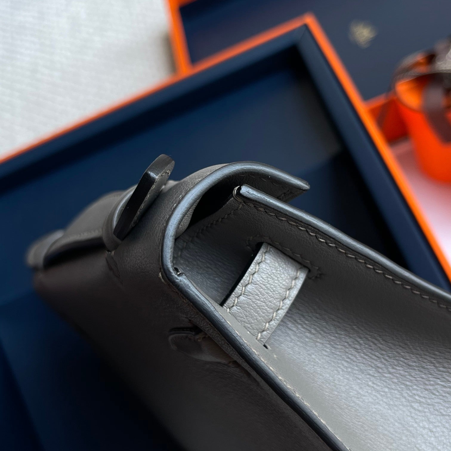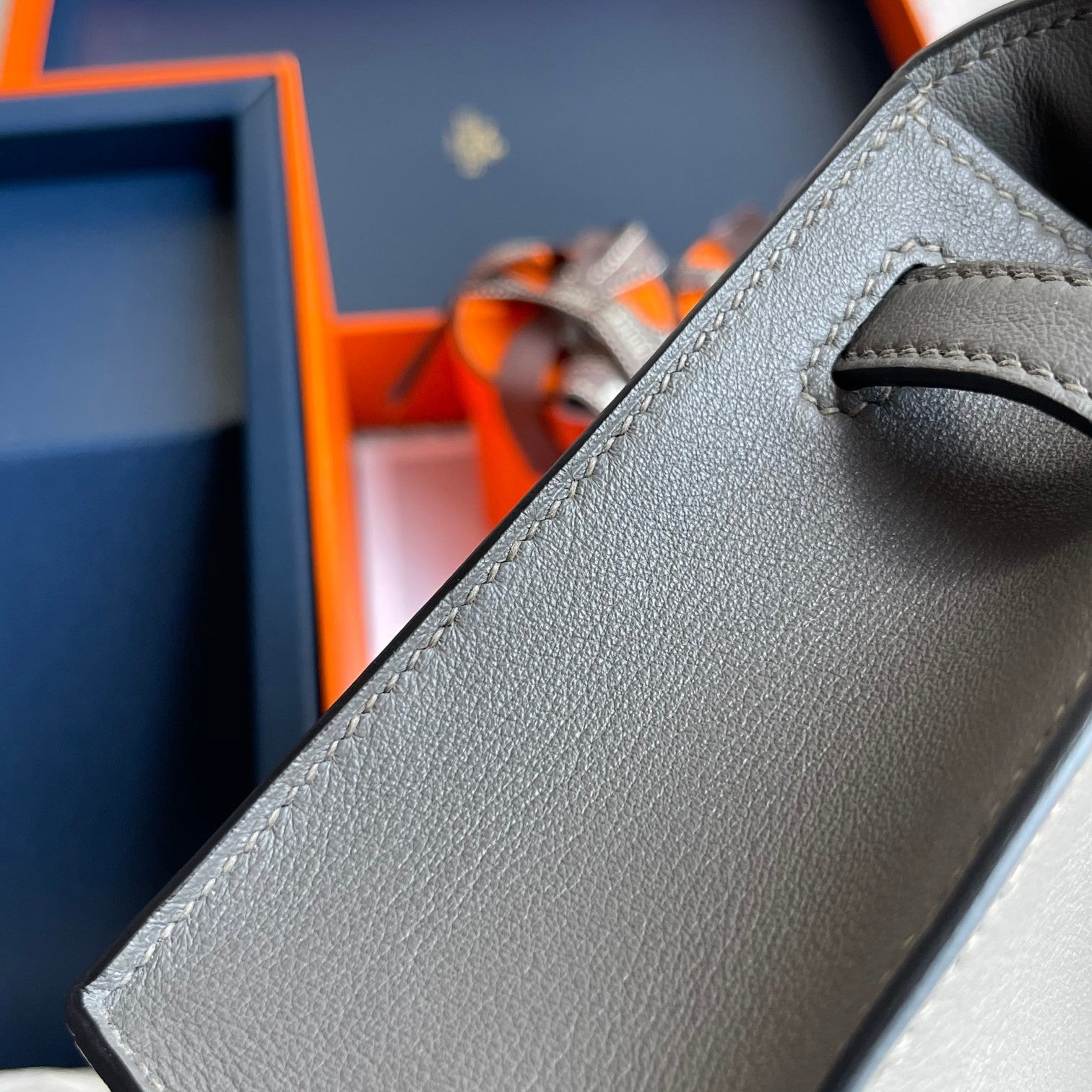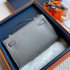 HM Kelly Pochette 22cm Smoke Gray Swift Silver Hardware