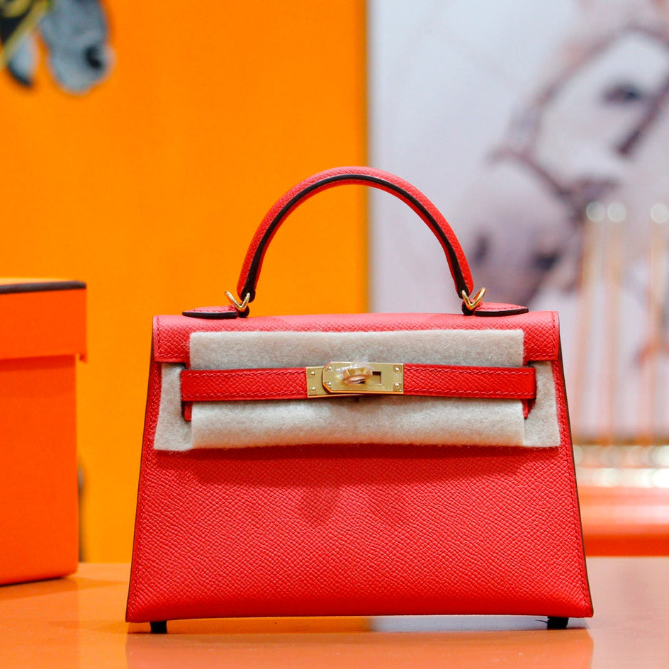 HM Mini Kelly 19cm Red Epsom Gold Hardware