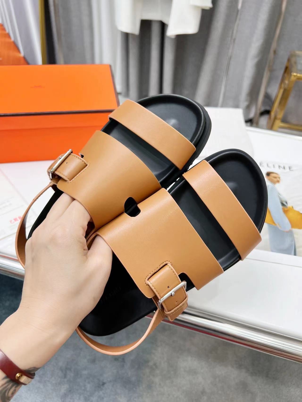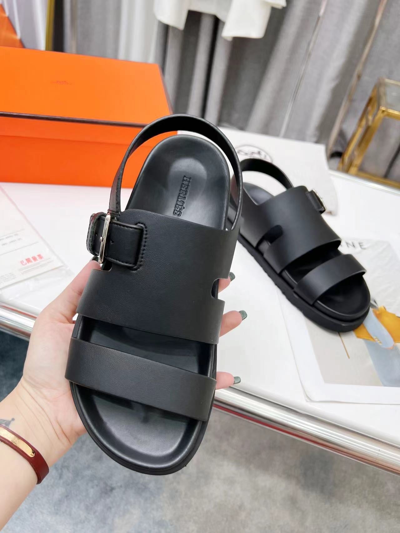 HM CHYPRE SANDAL BLACK WITH H-BUCKLECALFSKIN