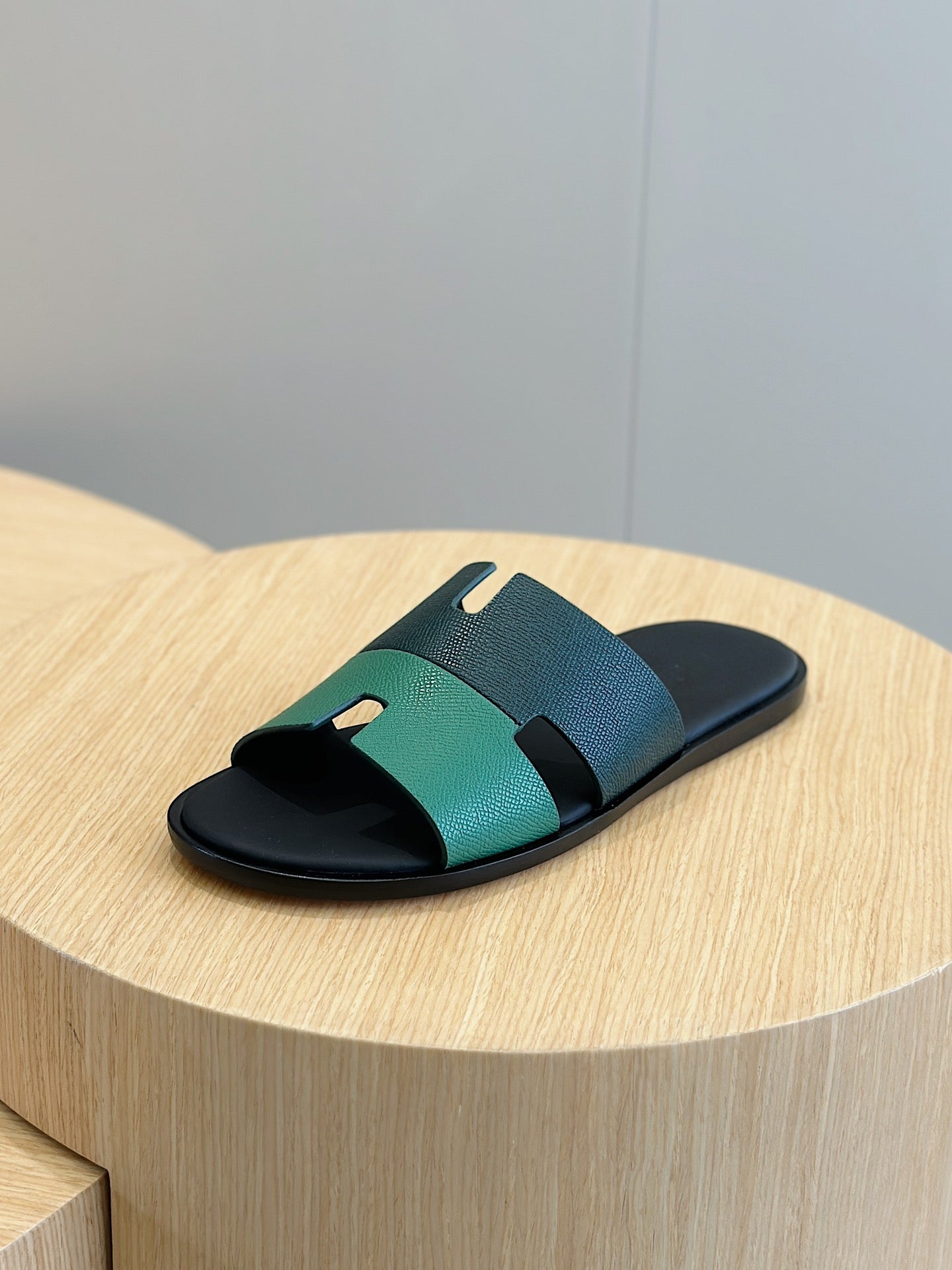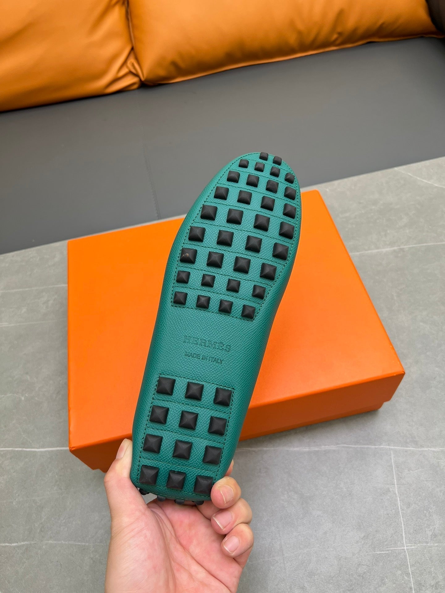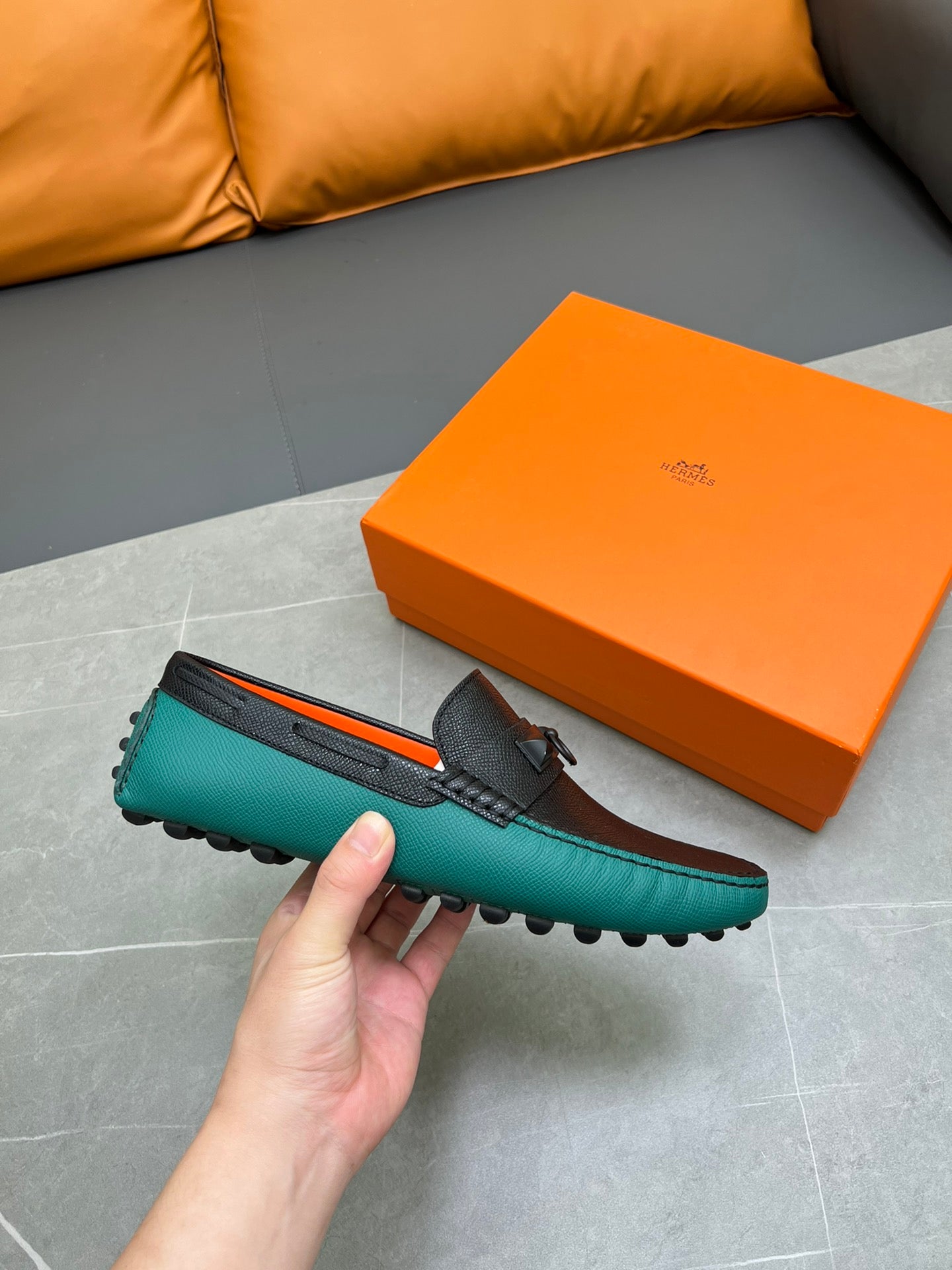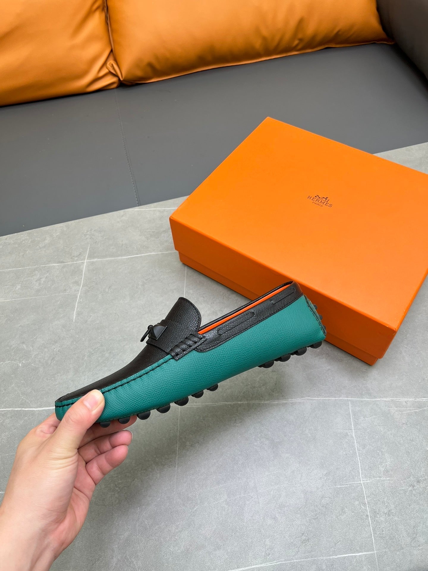 HM H-LOGO LOAFER PINE GREEN AND BLACK CALFSKIN