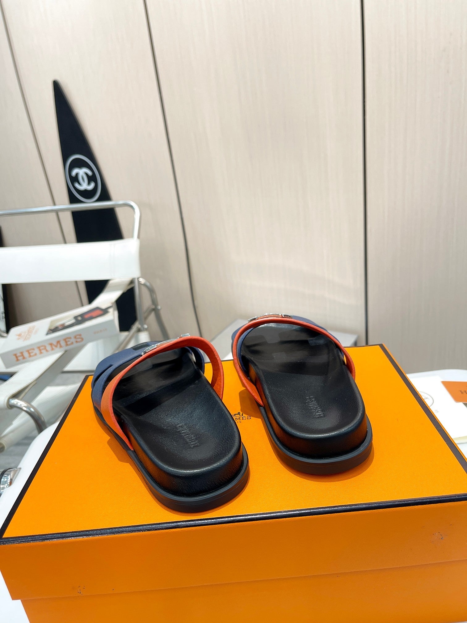 HM CHYPRE SANDAL ORANGE WITH H-BUCKLE CALFSKIN
