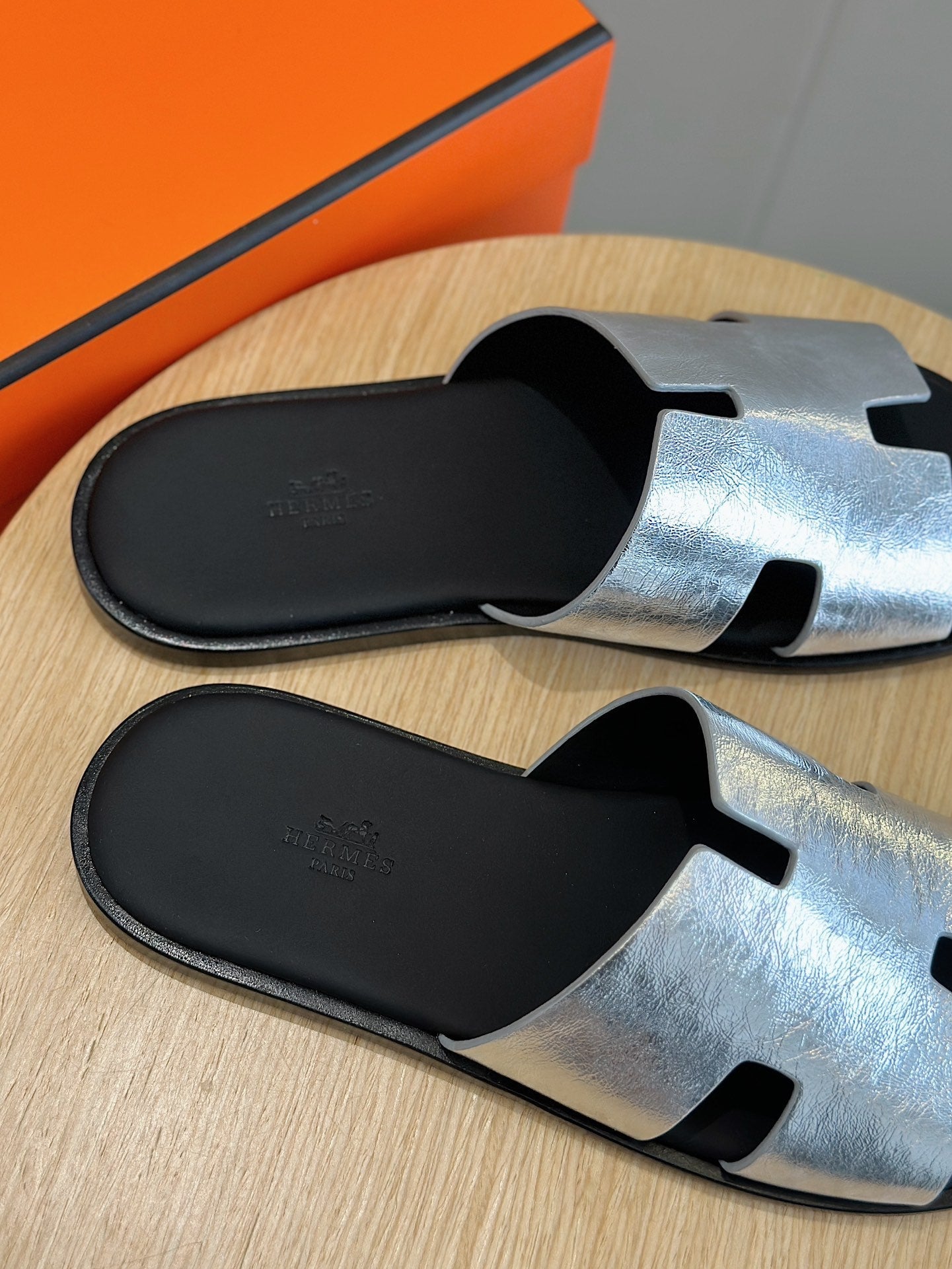 HM SILVER BUCKLE SLIPPERS BLACK CALFSKIN