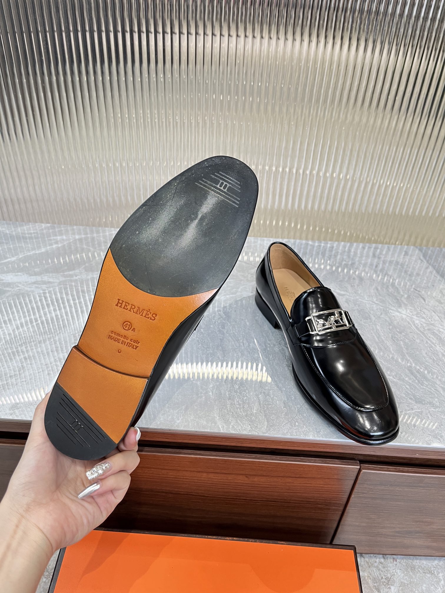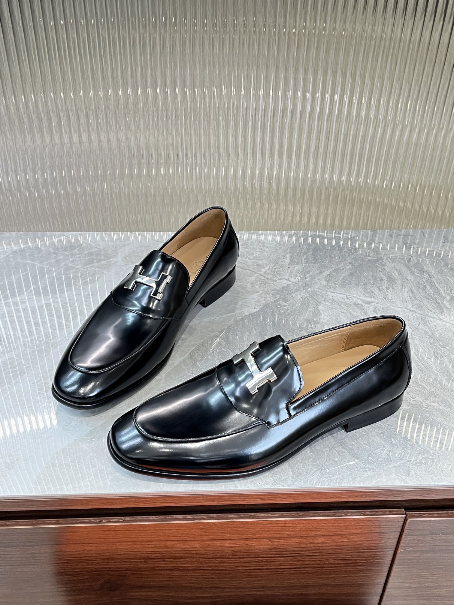 HM H-BUCKLE LOAFER GLOSSY BLACK CALFSKIN
