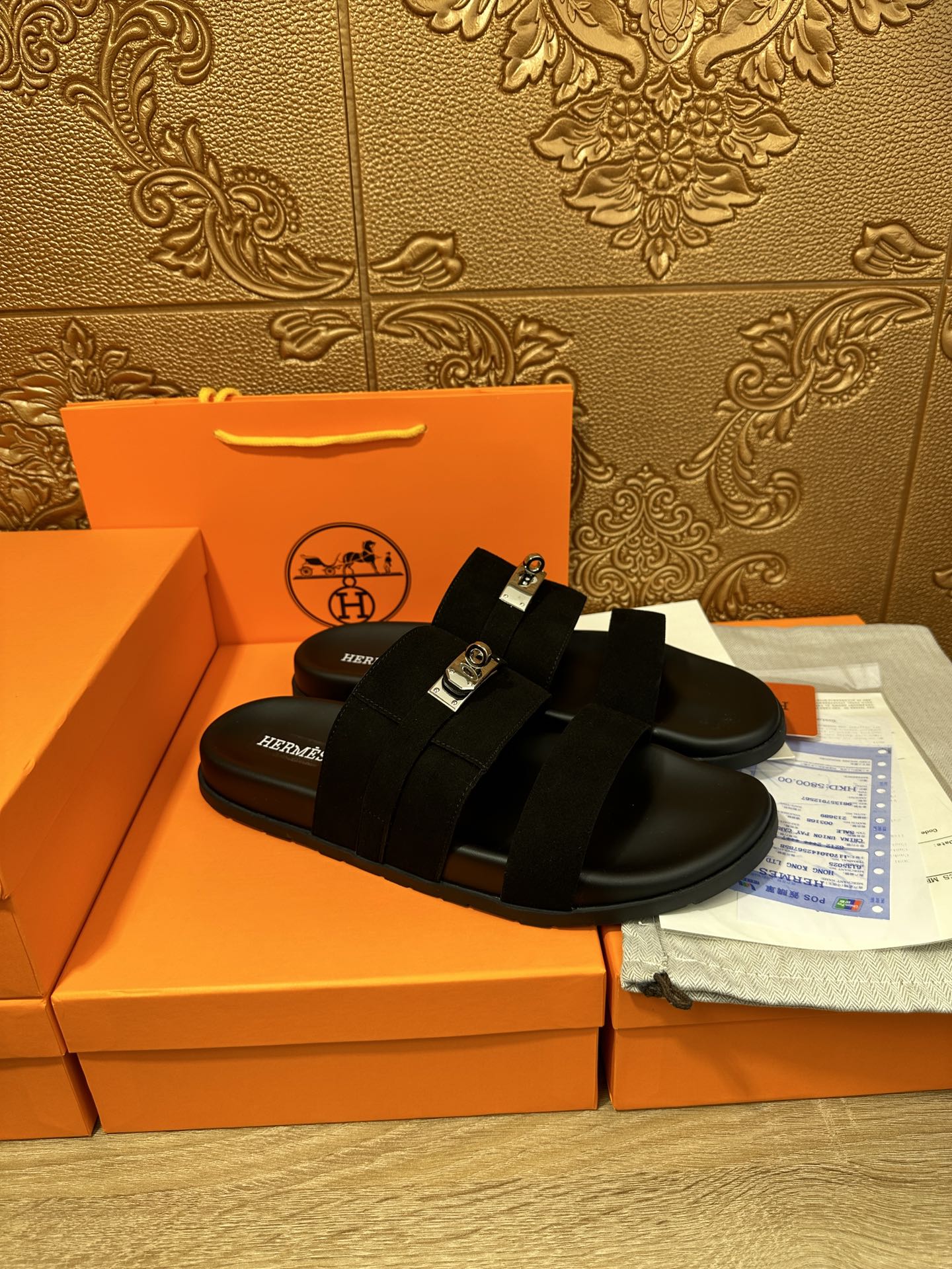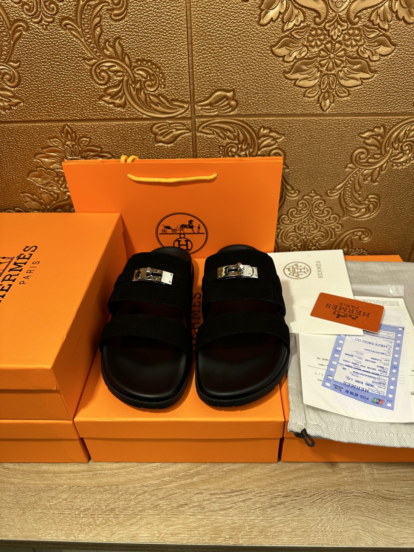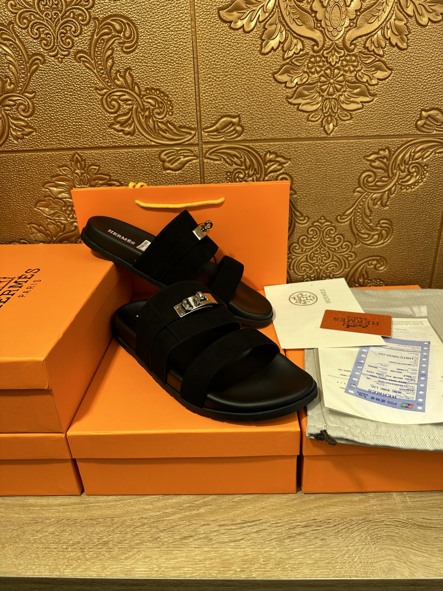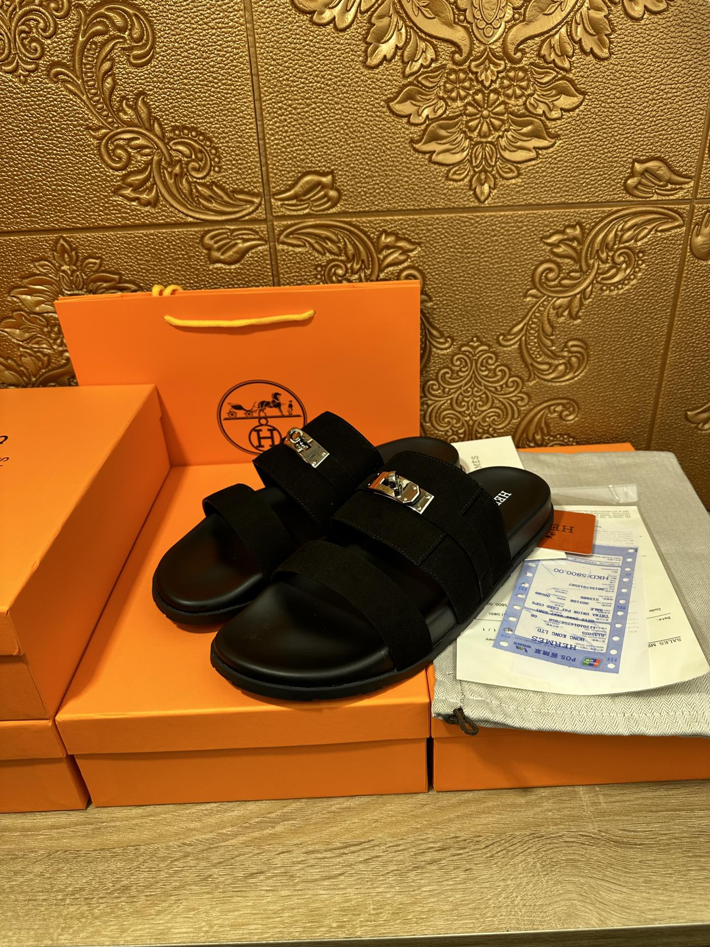 HM BLACK H-BUCKLE LOAFER BLACK CALFSKIN