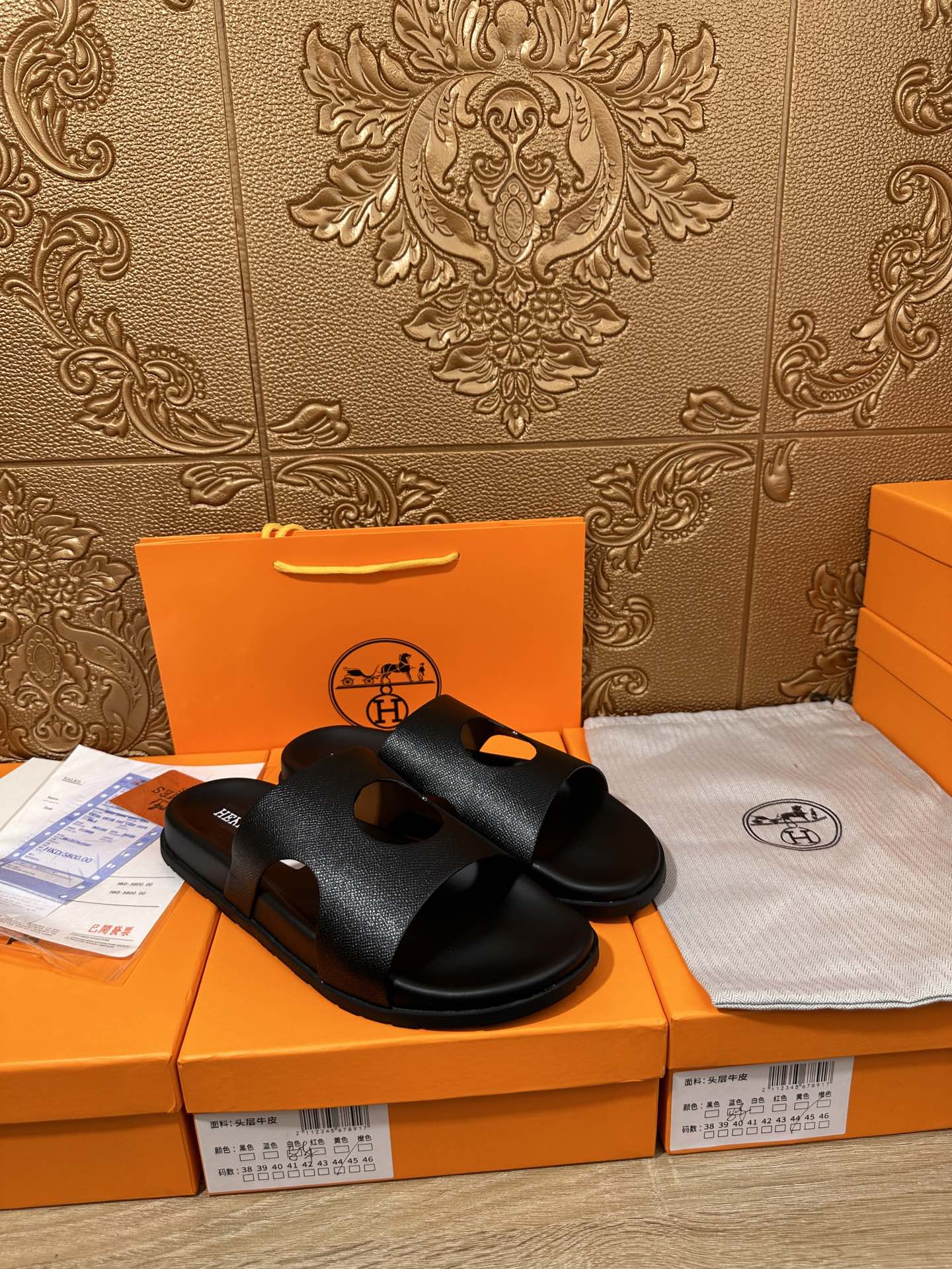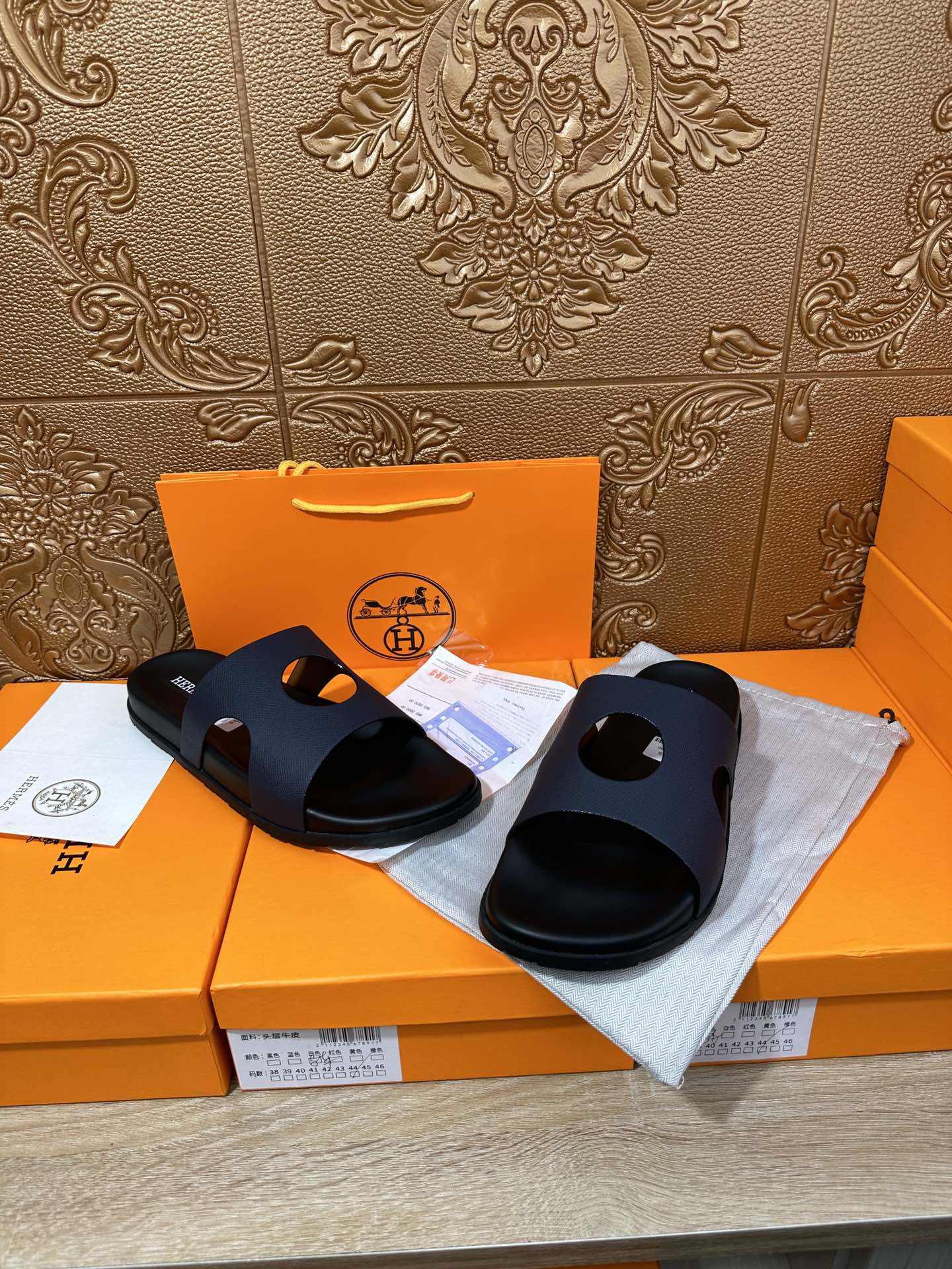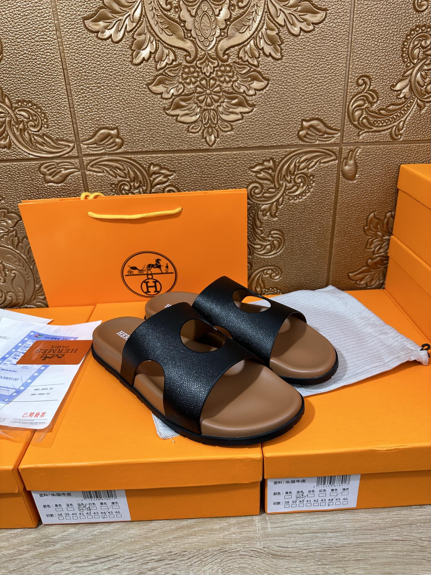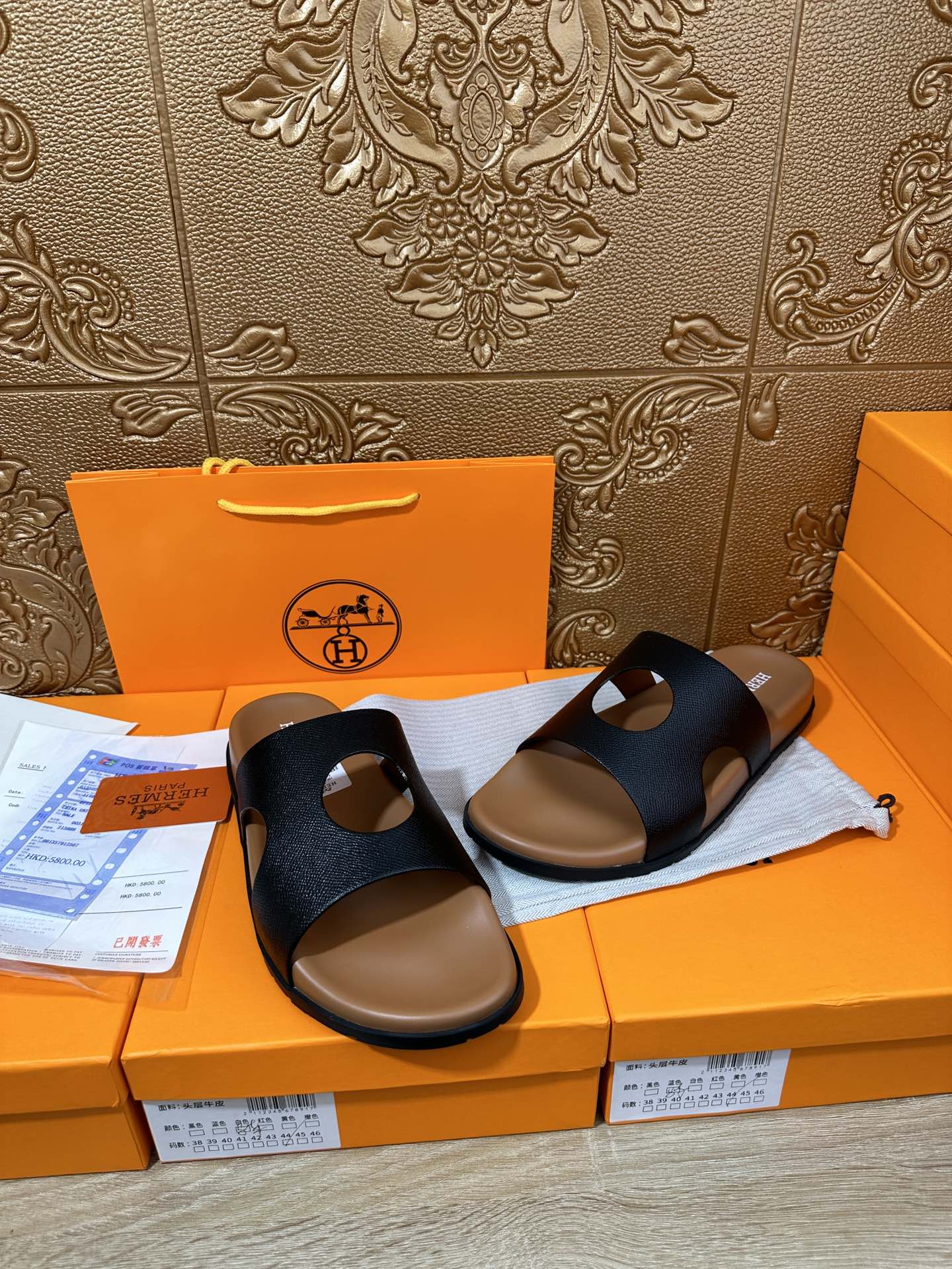 HM IZMIR SLIPPER BLACK AND DARK BROWN CALFSKIN