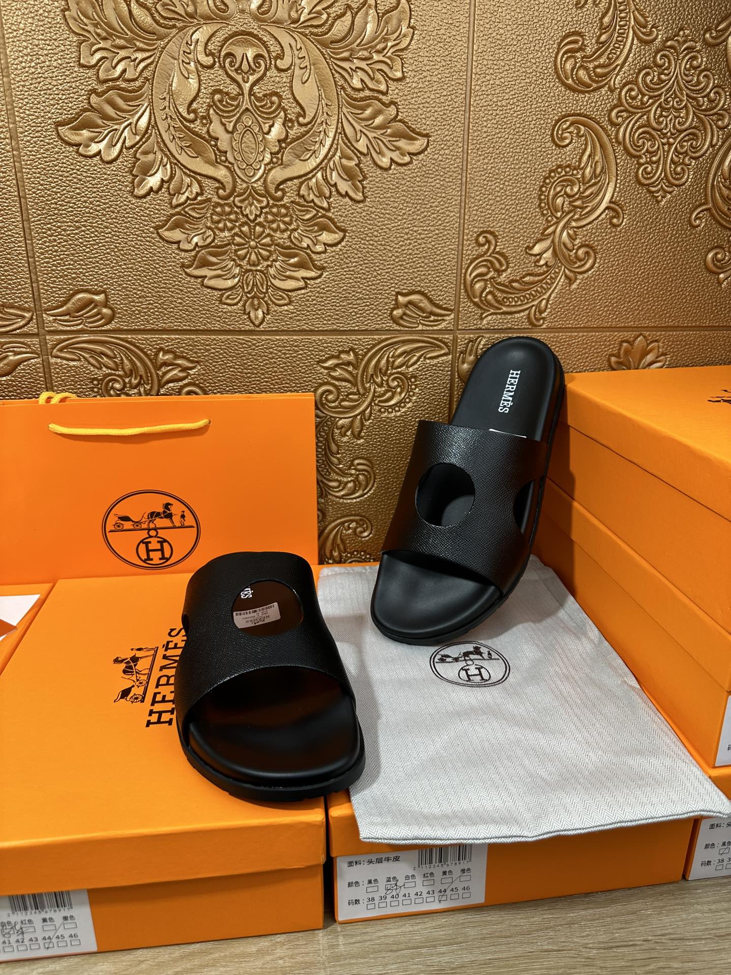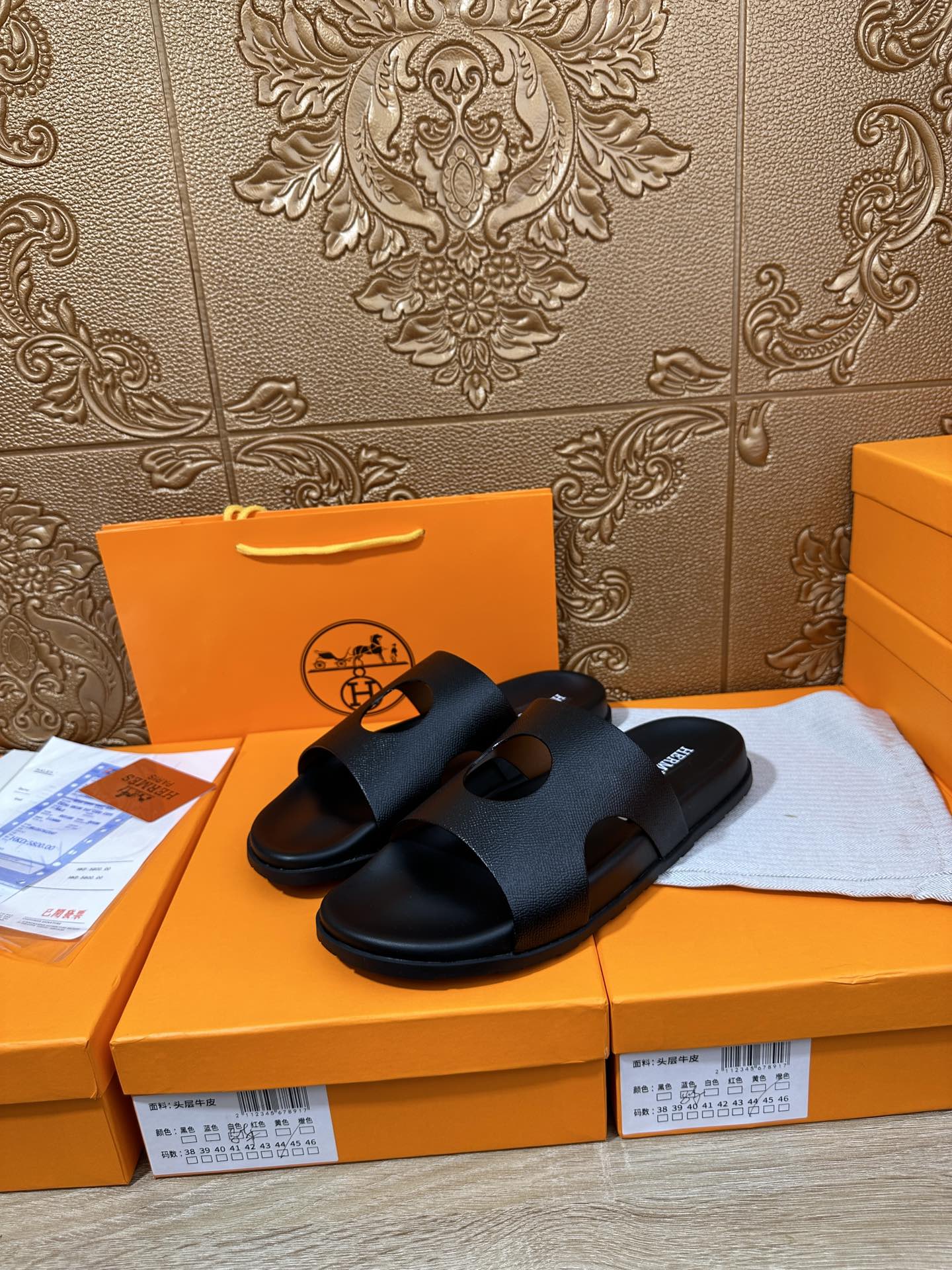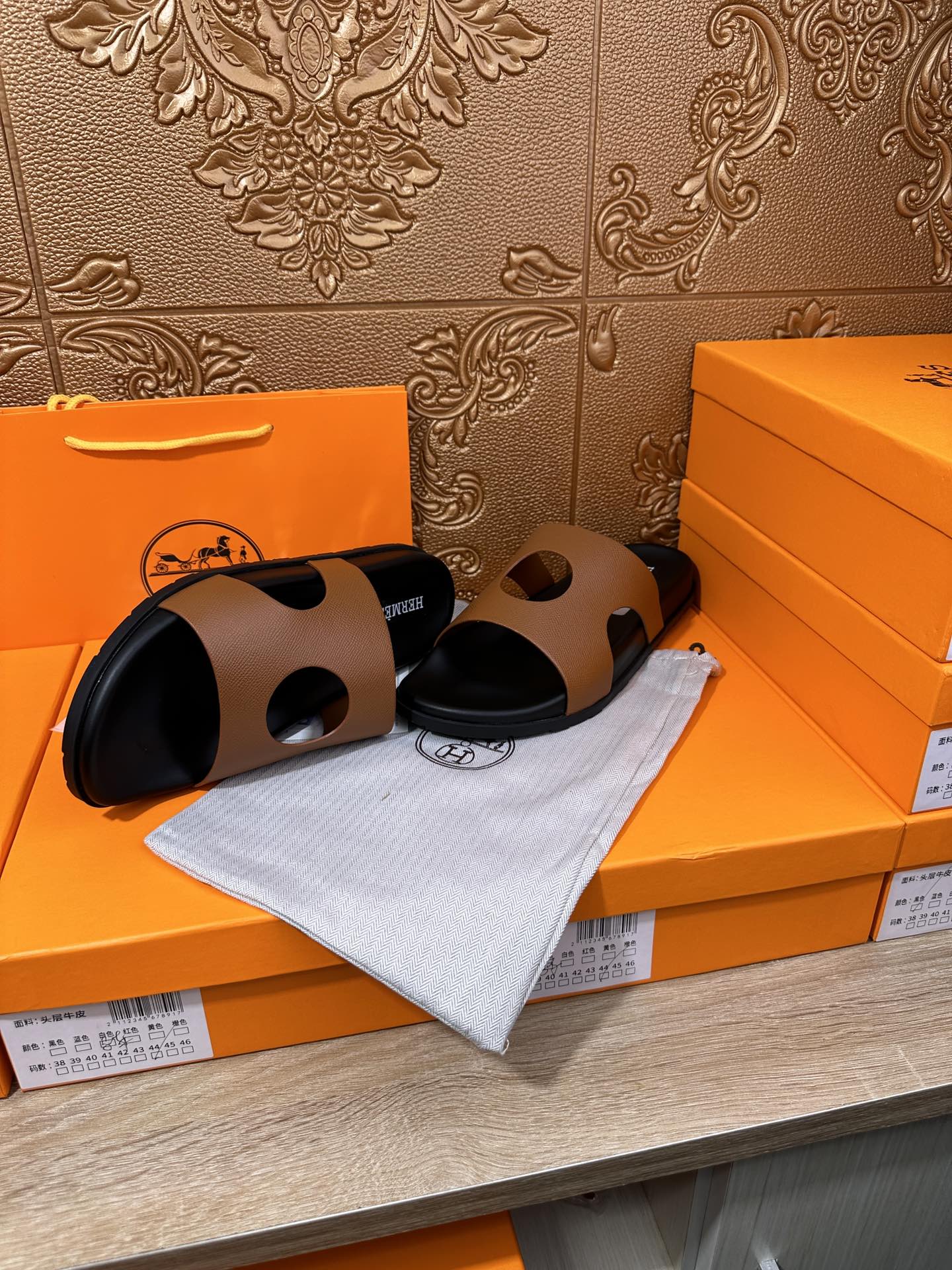 HM IZMIR SLIPPER BLACK AND DARK BROWN CALFSKIN
