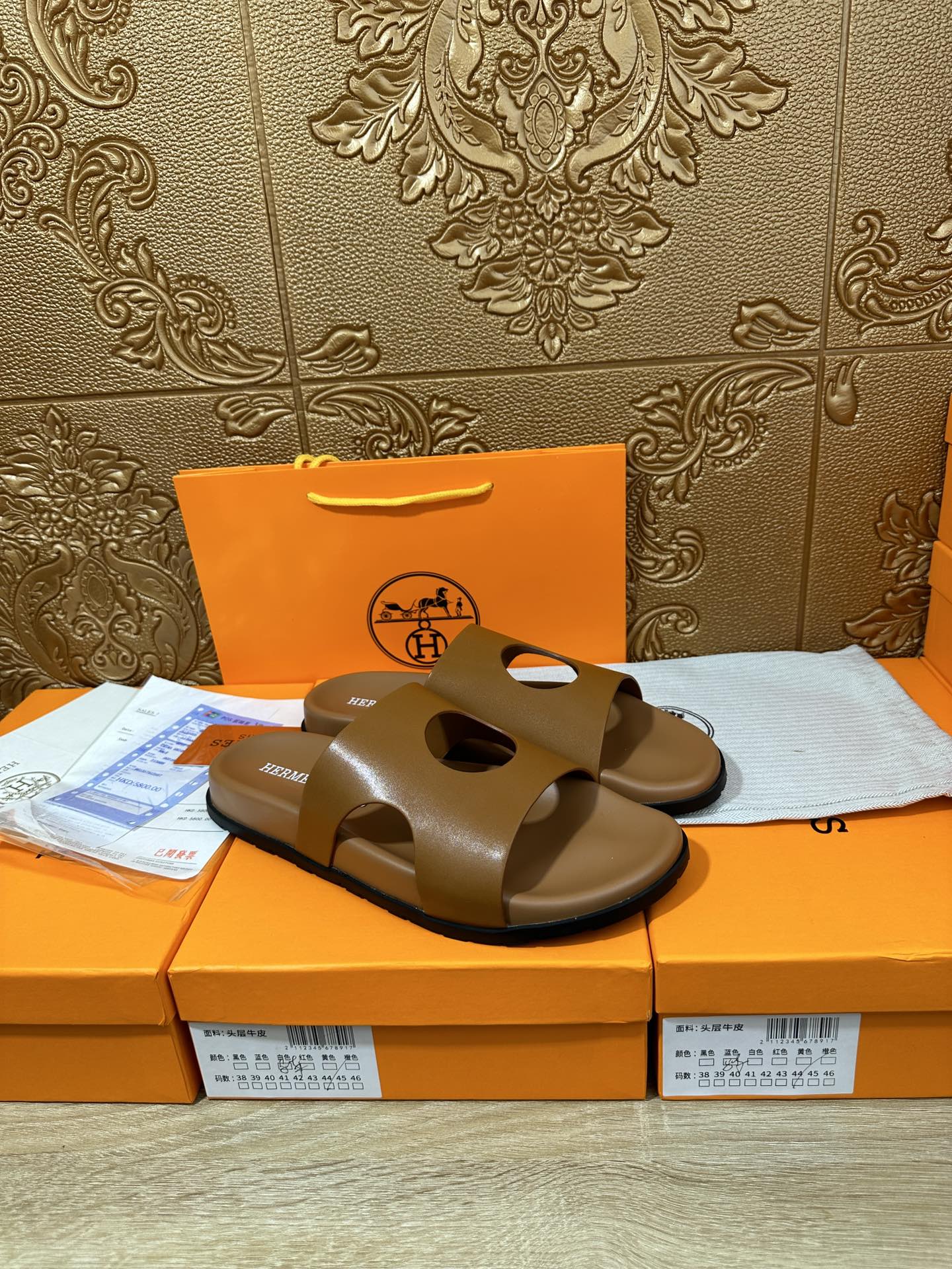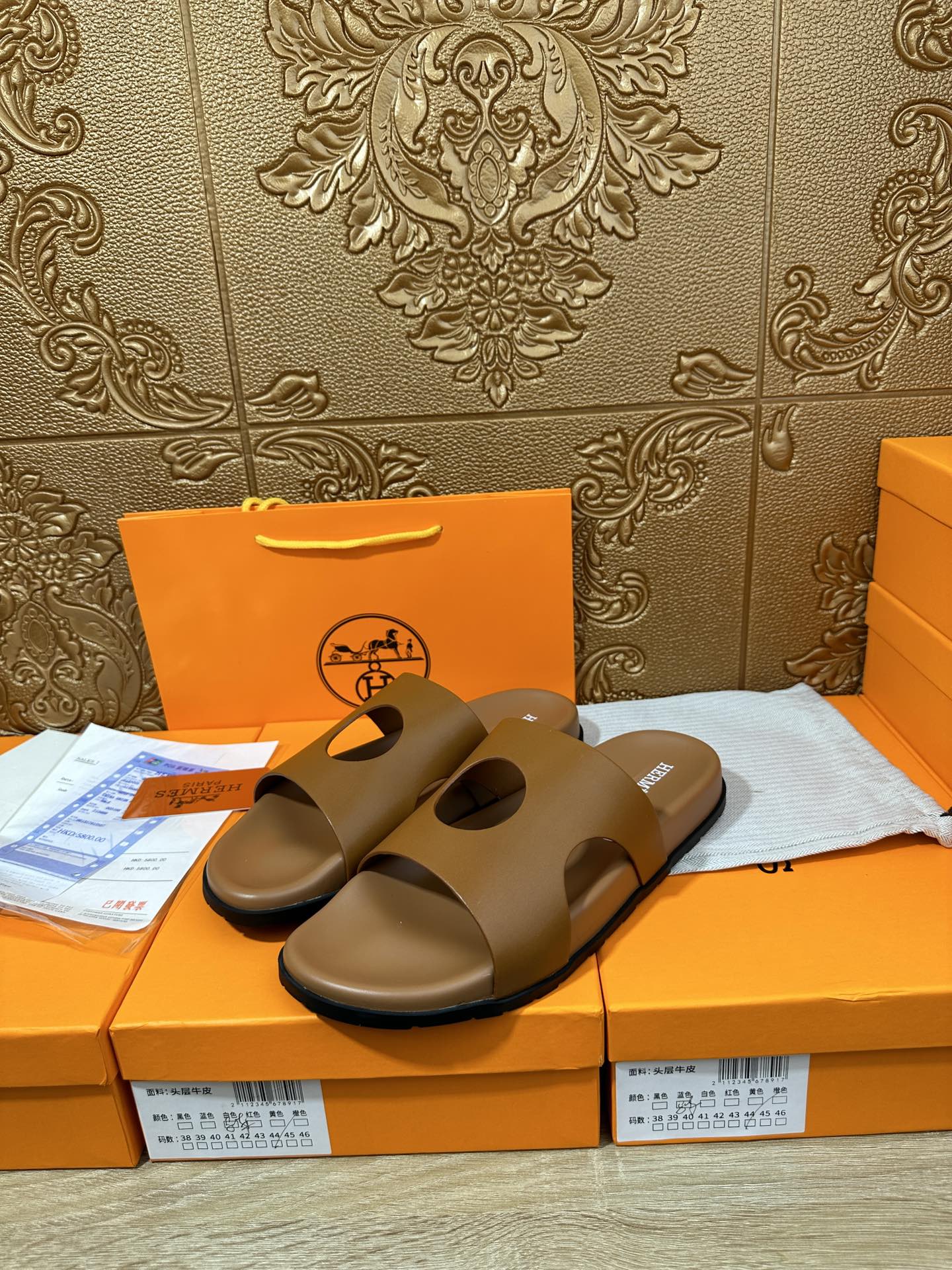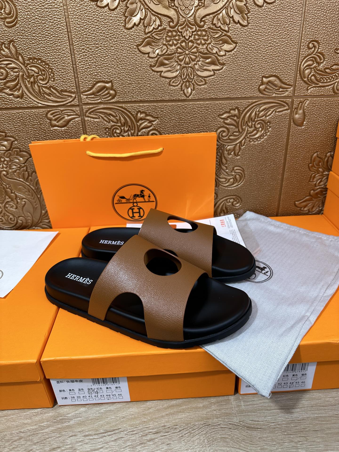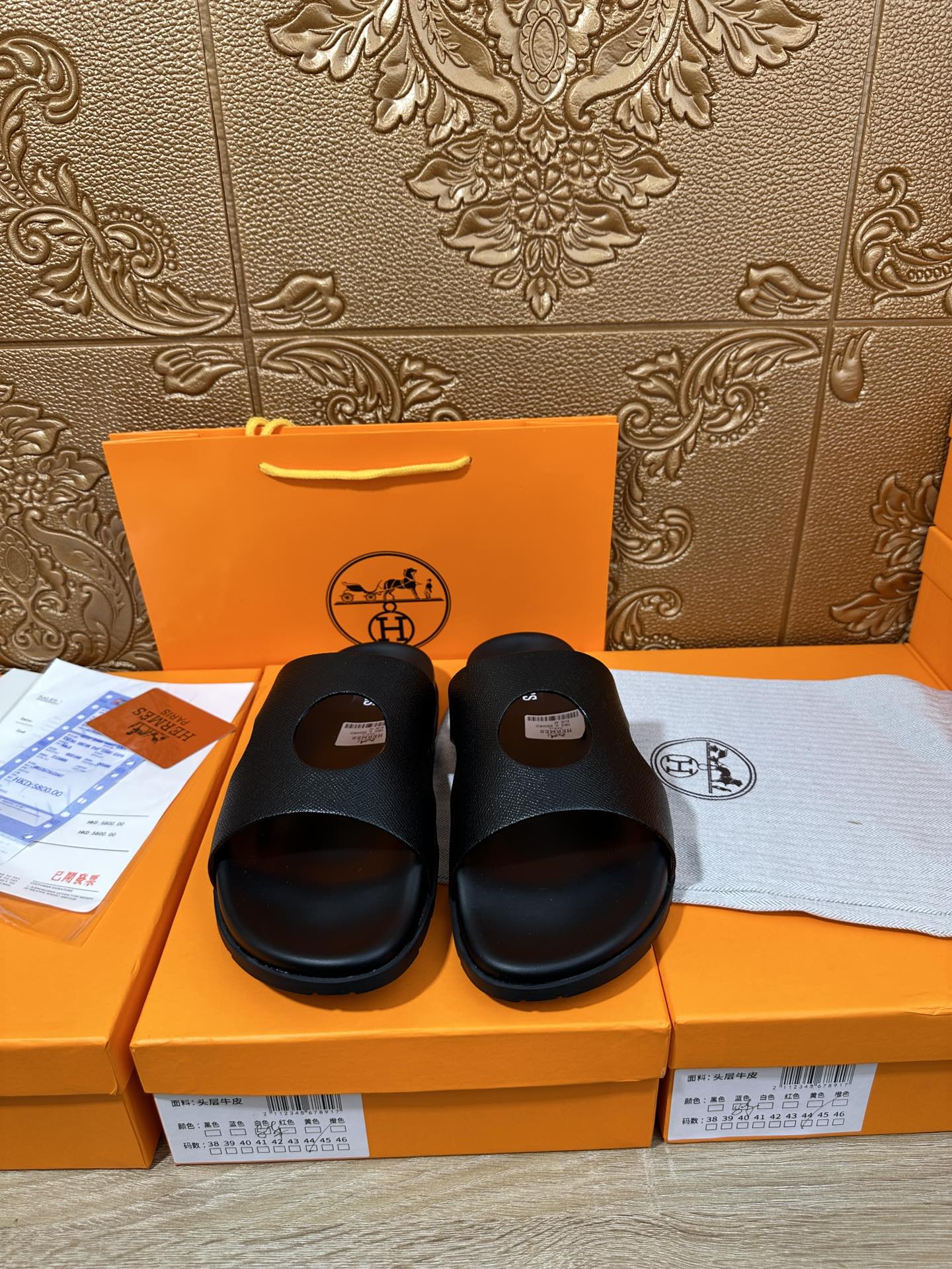HM IZMIR SLIPPER BLACK AND DARK BROWN CALFSKIN