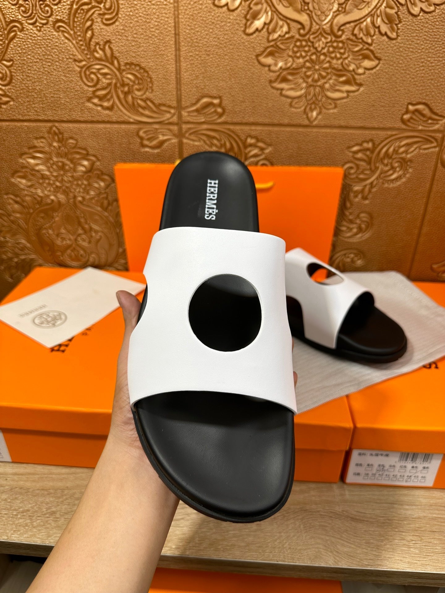 HM CIRCLE CUT SANDAL BLACK AND WHITE CALFSKIN