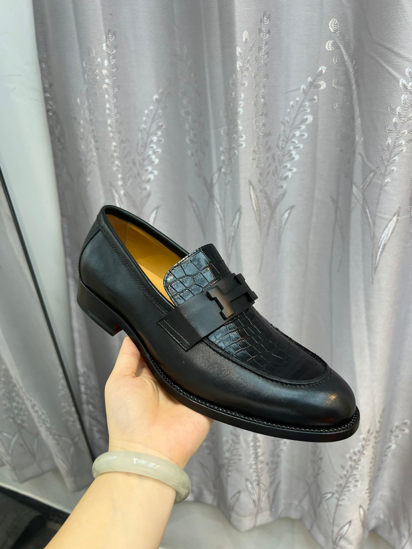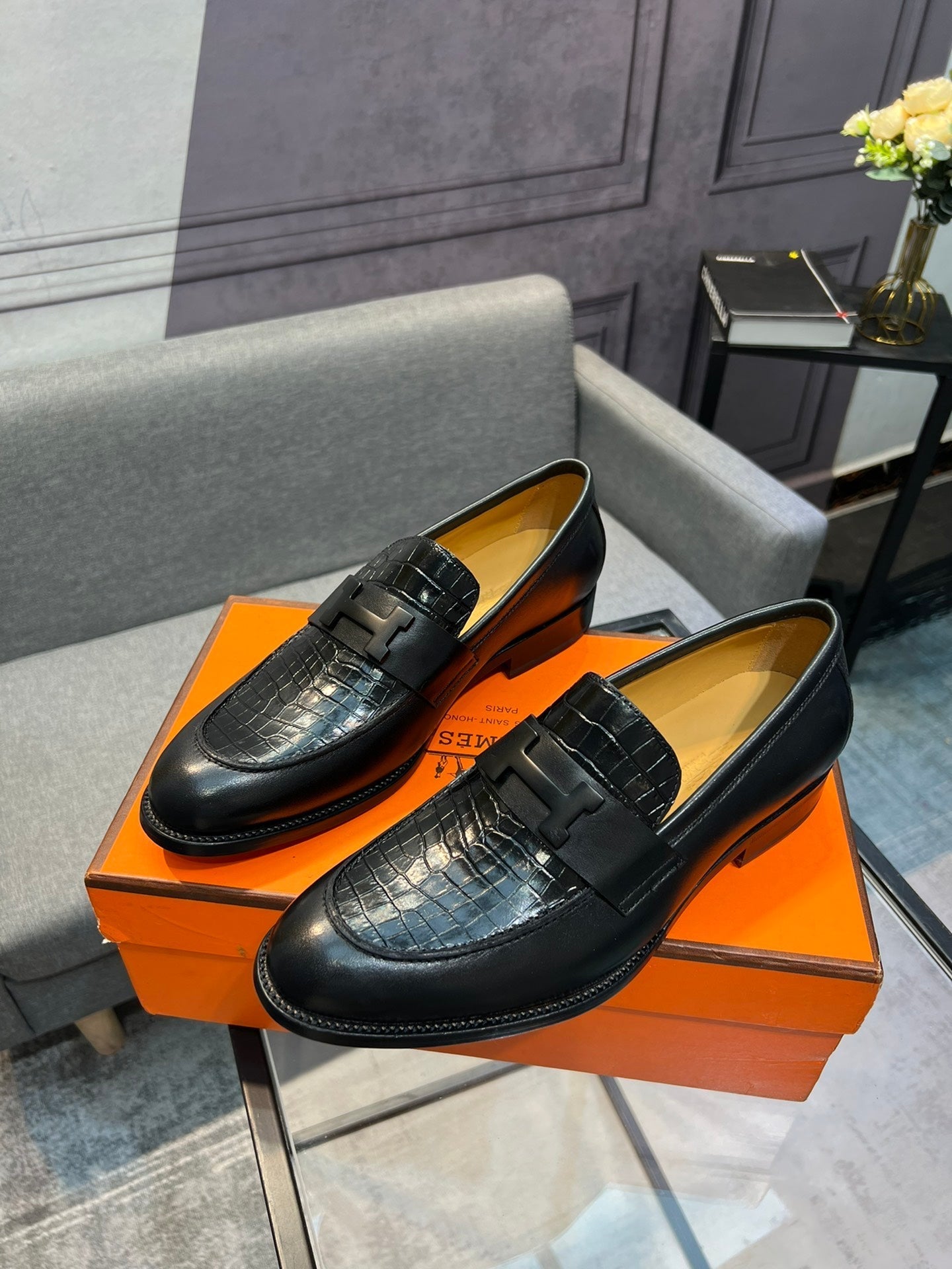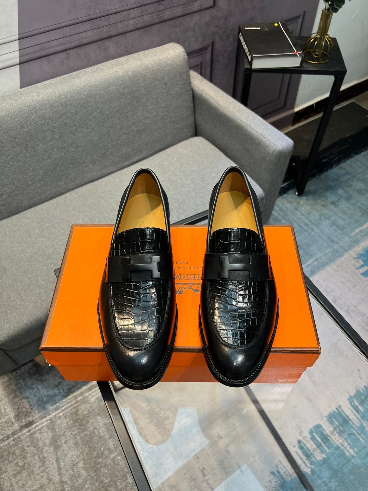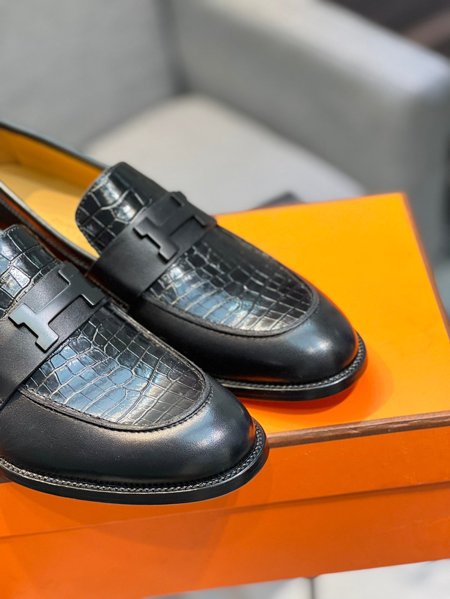 HM PARIS LOAFER BLACK CALFSKIN WITH CROCODILE MOTIF