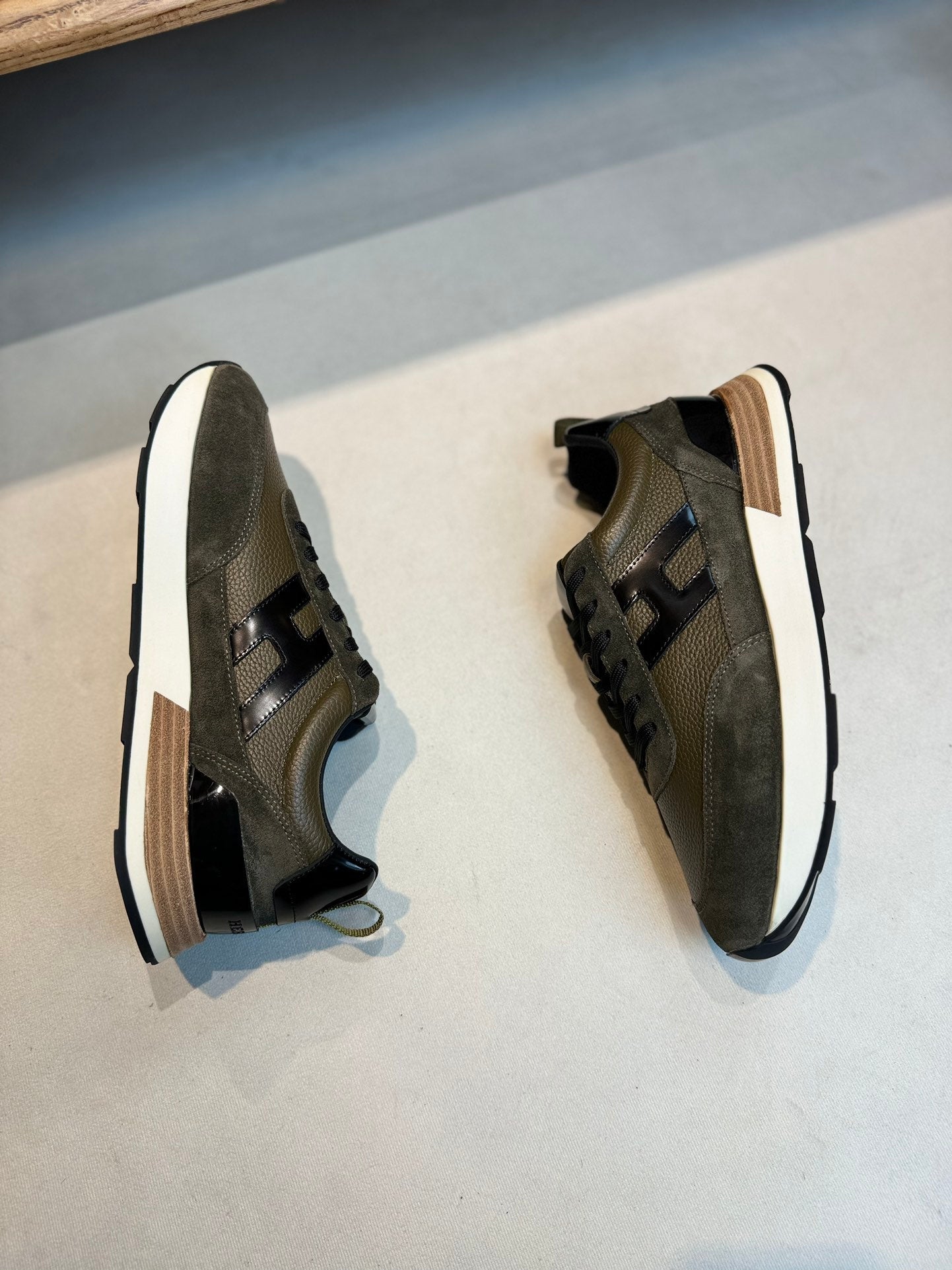 HM INTERACTIVE LACE-UP SNEAKER OLIVE CALFSKIN