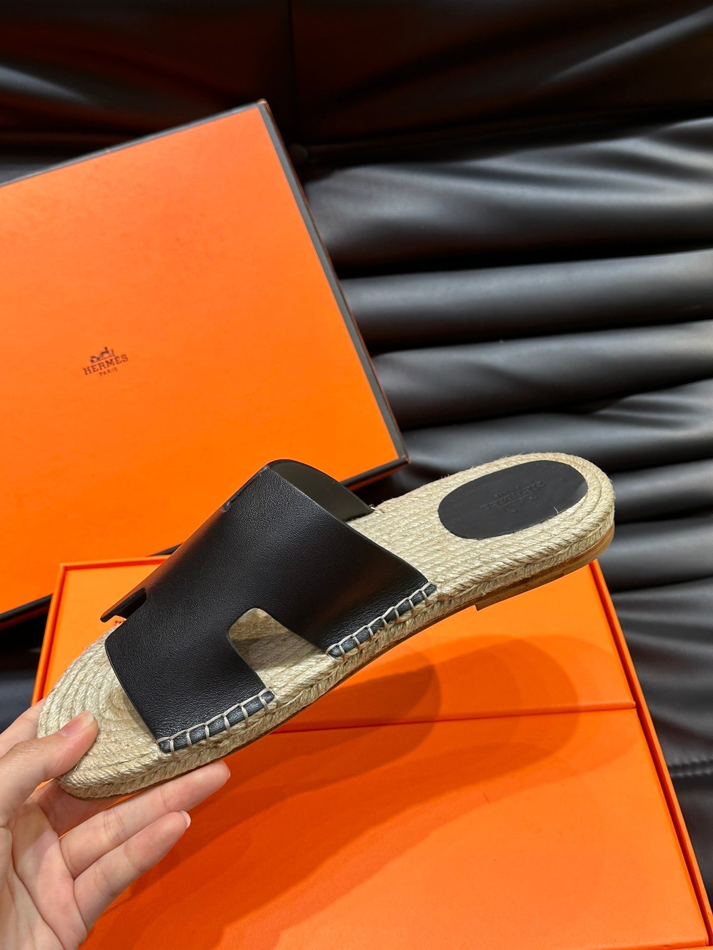 HM ANTIGUA ESPADRILLE SANDAL BLACK CALFSKIN