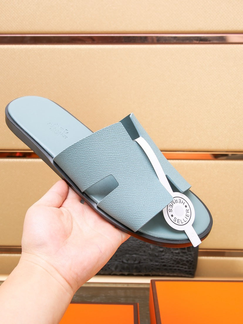 HM IZMIR SANDAL GRAY AND CERULEAN CALFSKIN