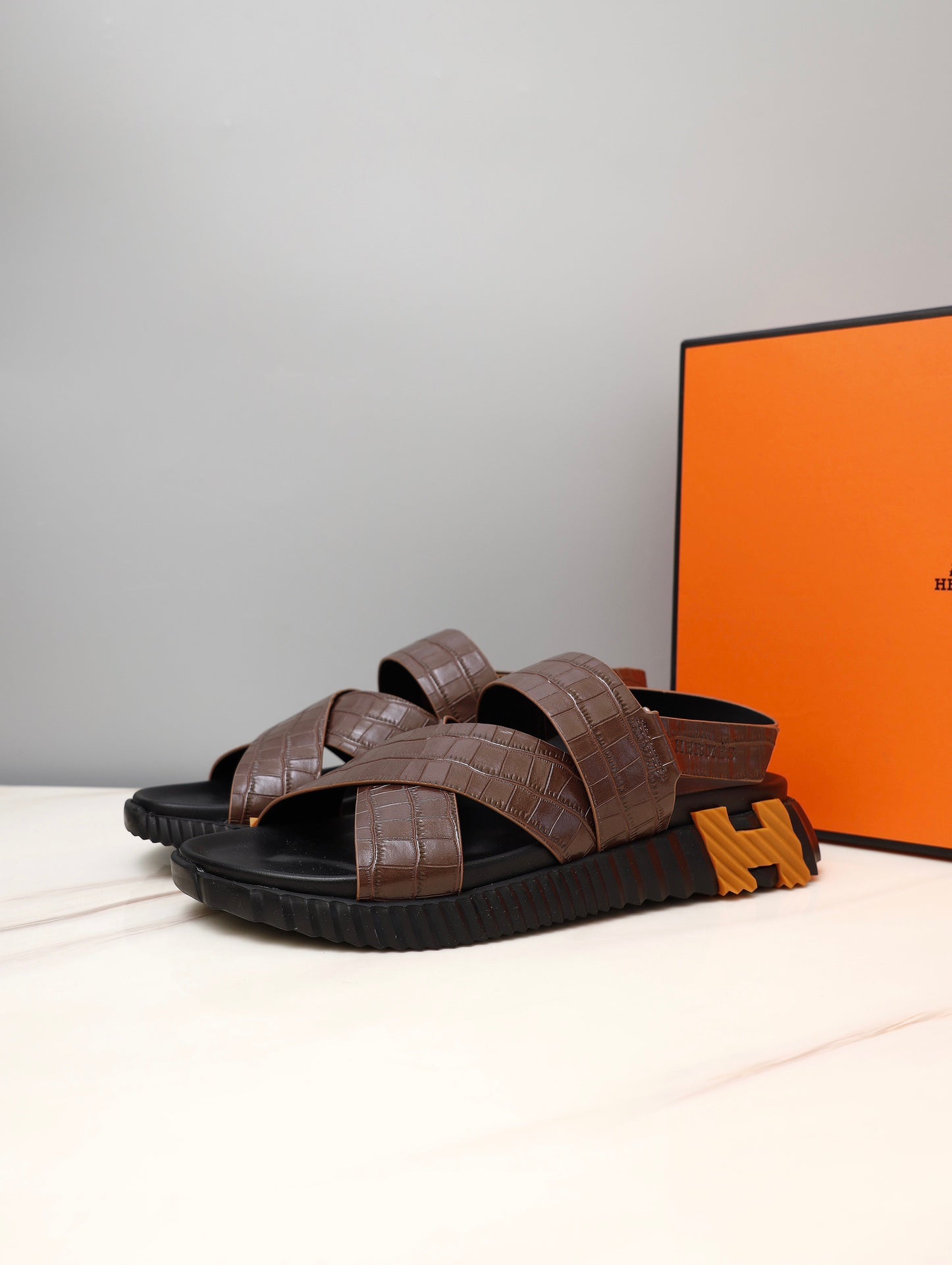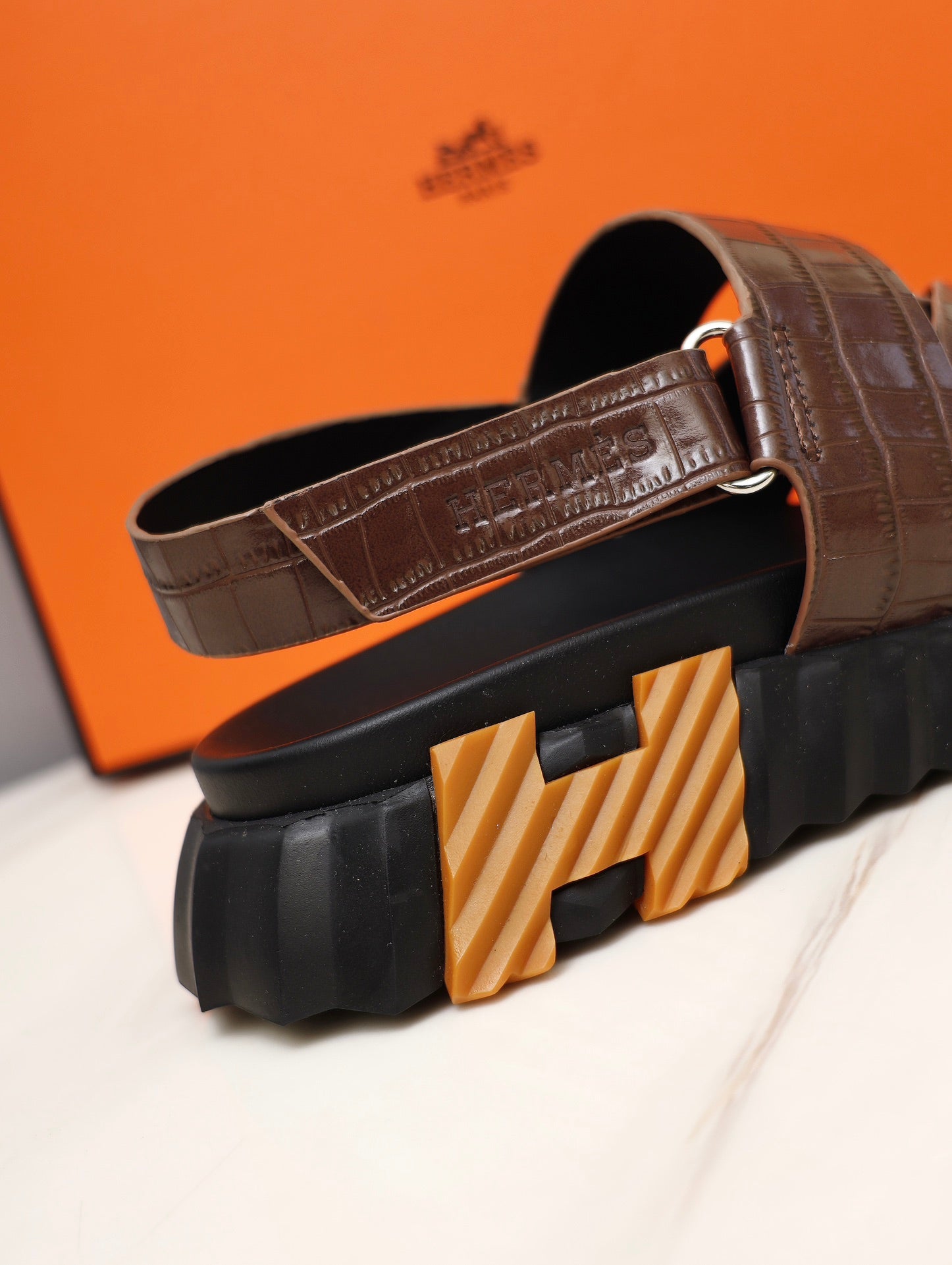 HM ELECTRIC CROCODILE MOTIF SANDAL CEDAR CALFSKIN