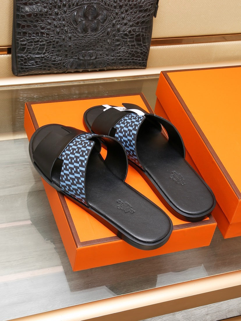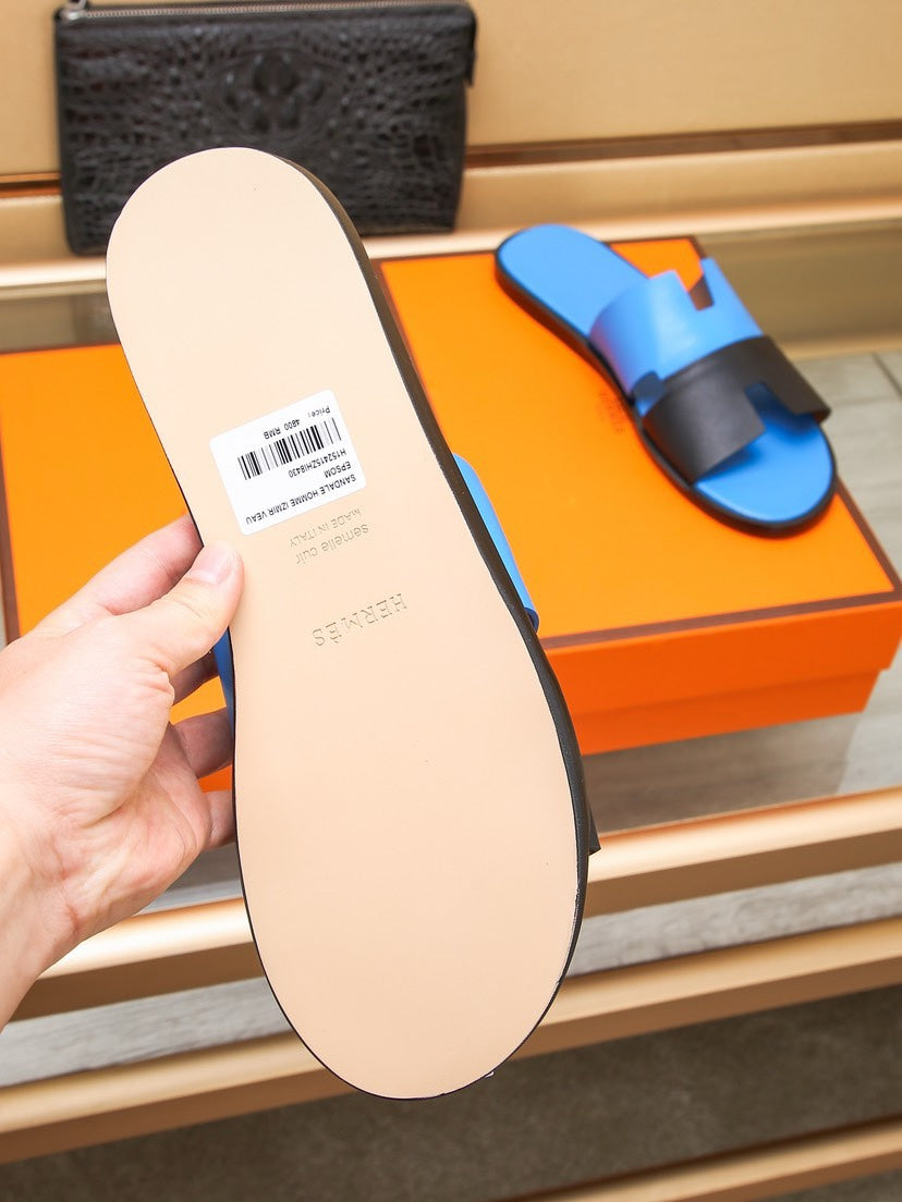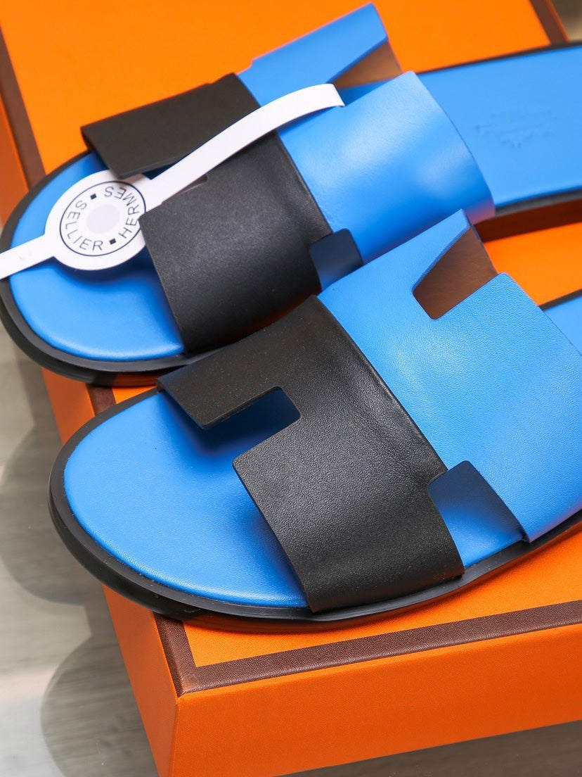 HM IZMIR SANDAL BLACK AND SAPPHIRE CALFSKIN