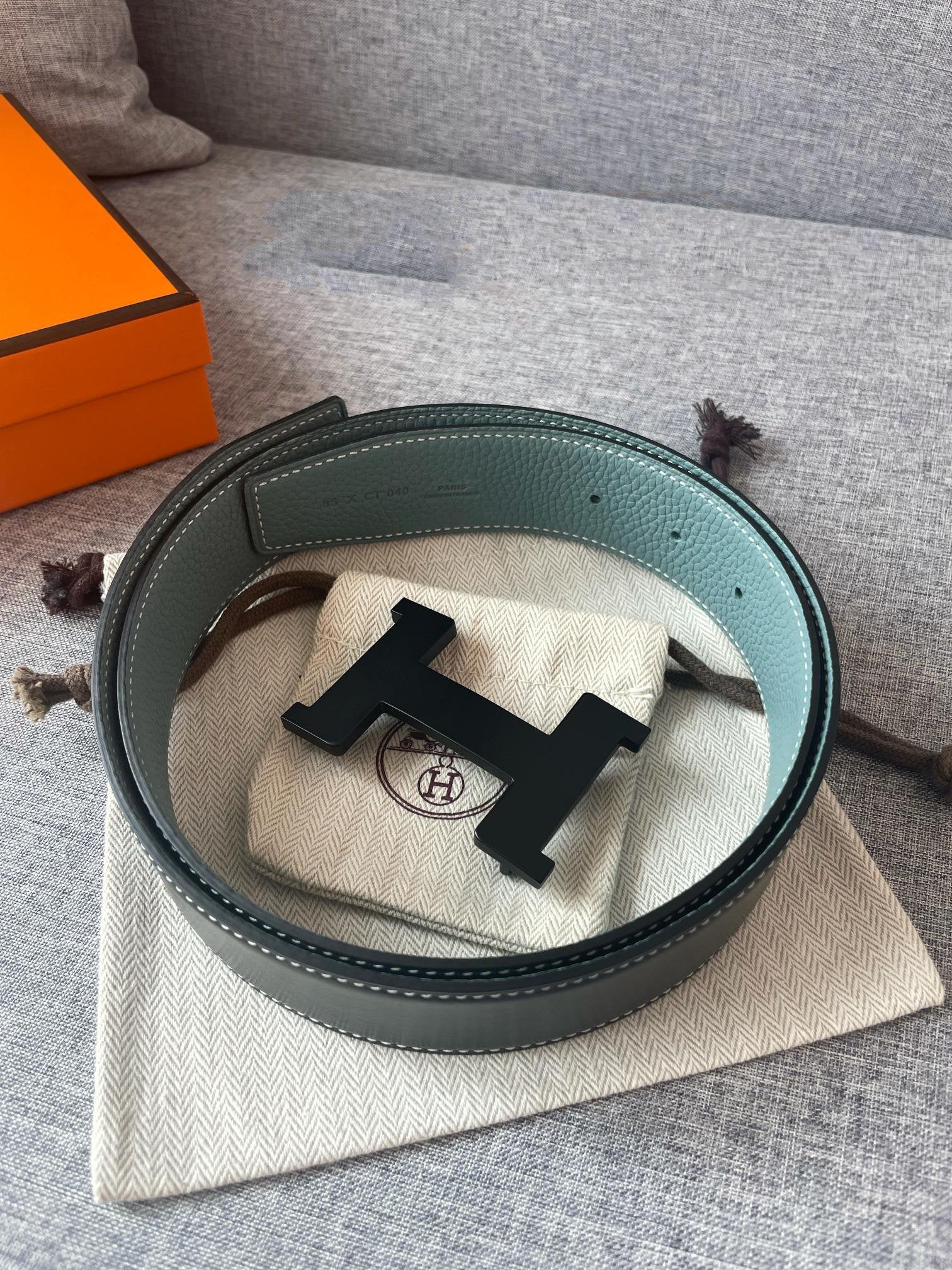 H CONSTANCE REVERSIBLE BELT 38MM BLACK BUCKLE BLACK SKY BLUE LEATHER