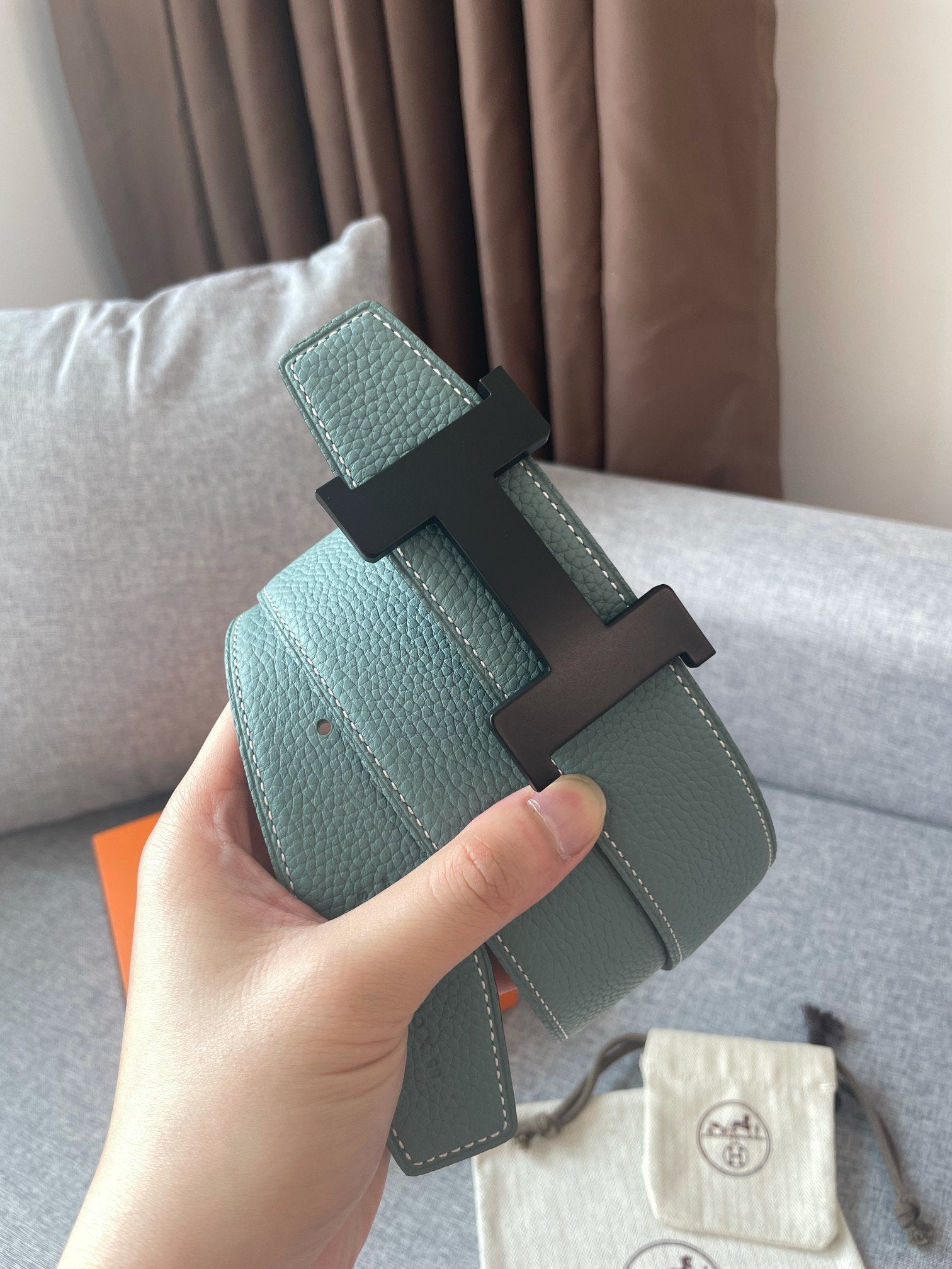 • H Buckle in permabrass plated metal.