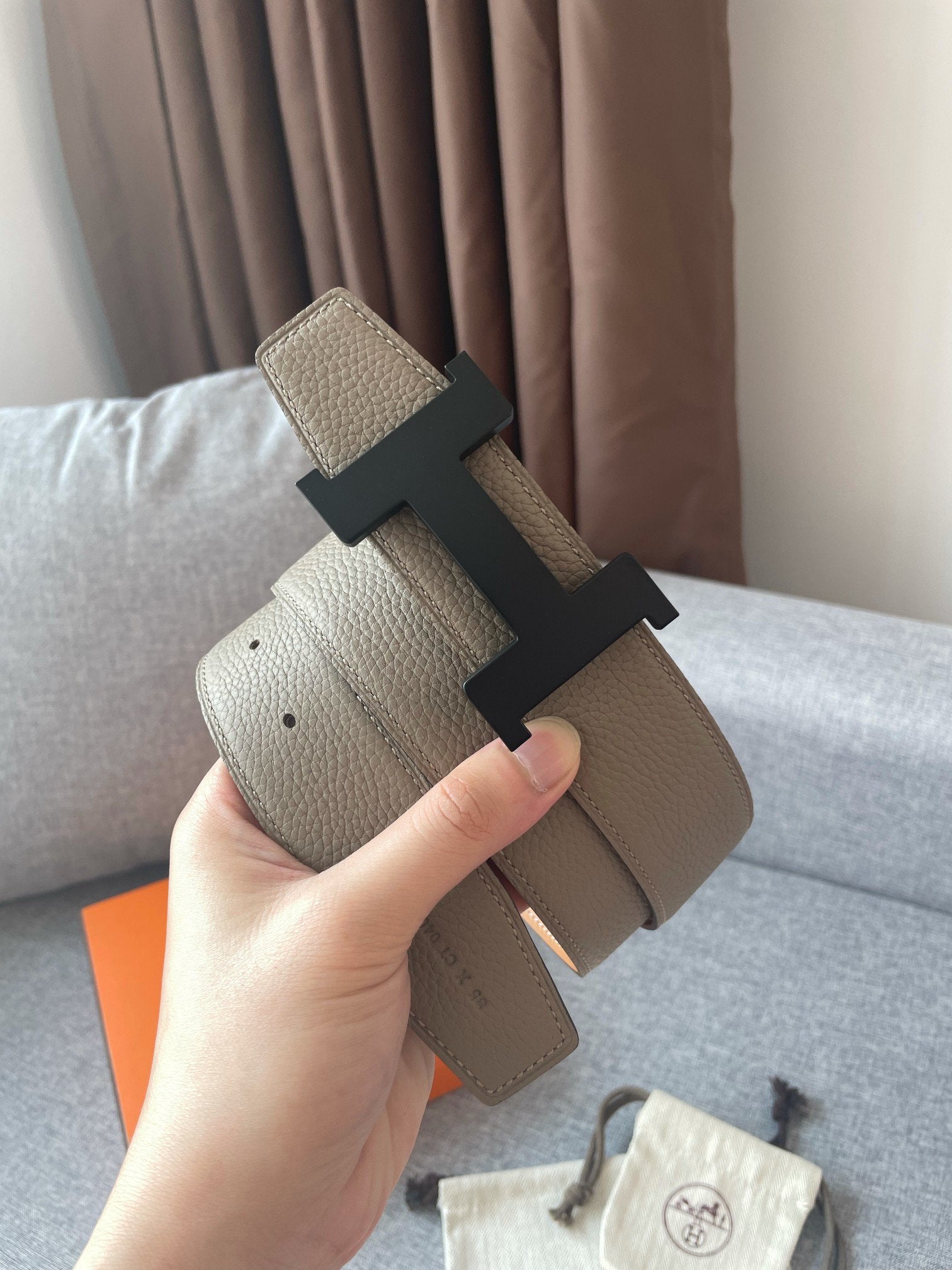 H CONSTANCE REVERSIBLE BELT 38MM BLACK BUCKLE GOLD TIN GREY LEATHER