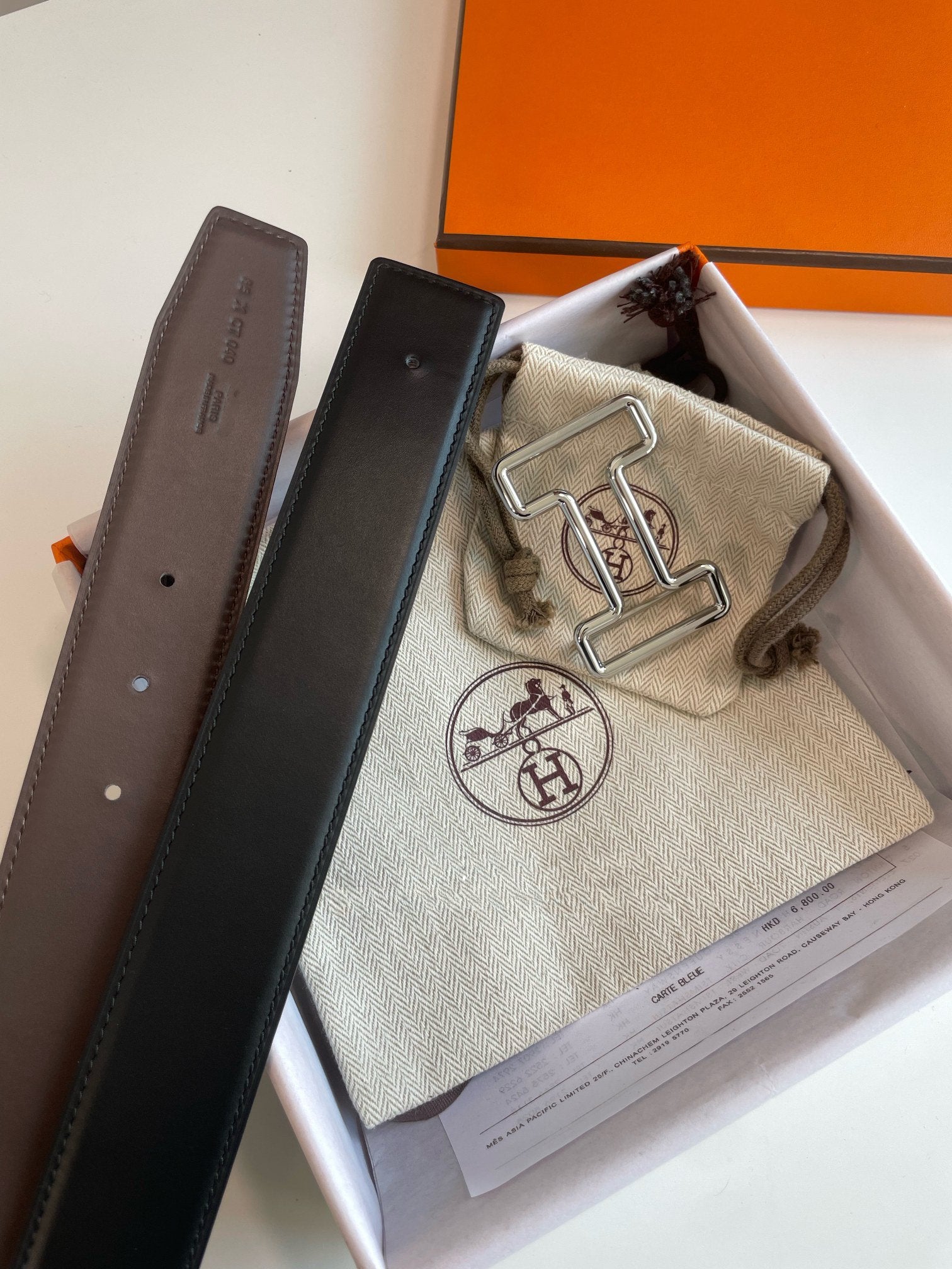 • H Buckle in permabrass plated metal.