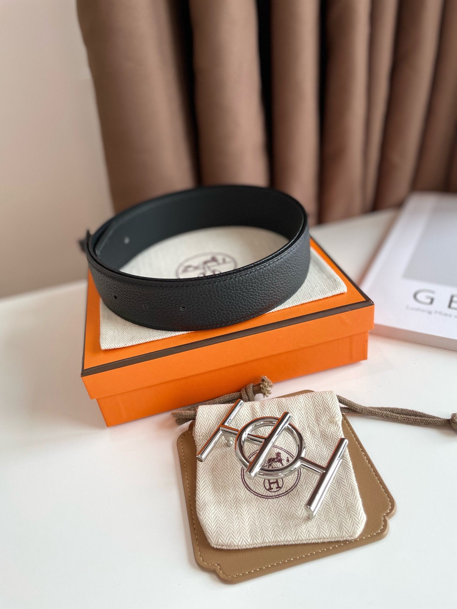• H Buckle in permabrass plated metal.