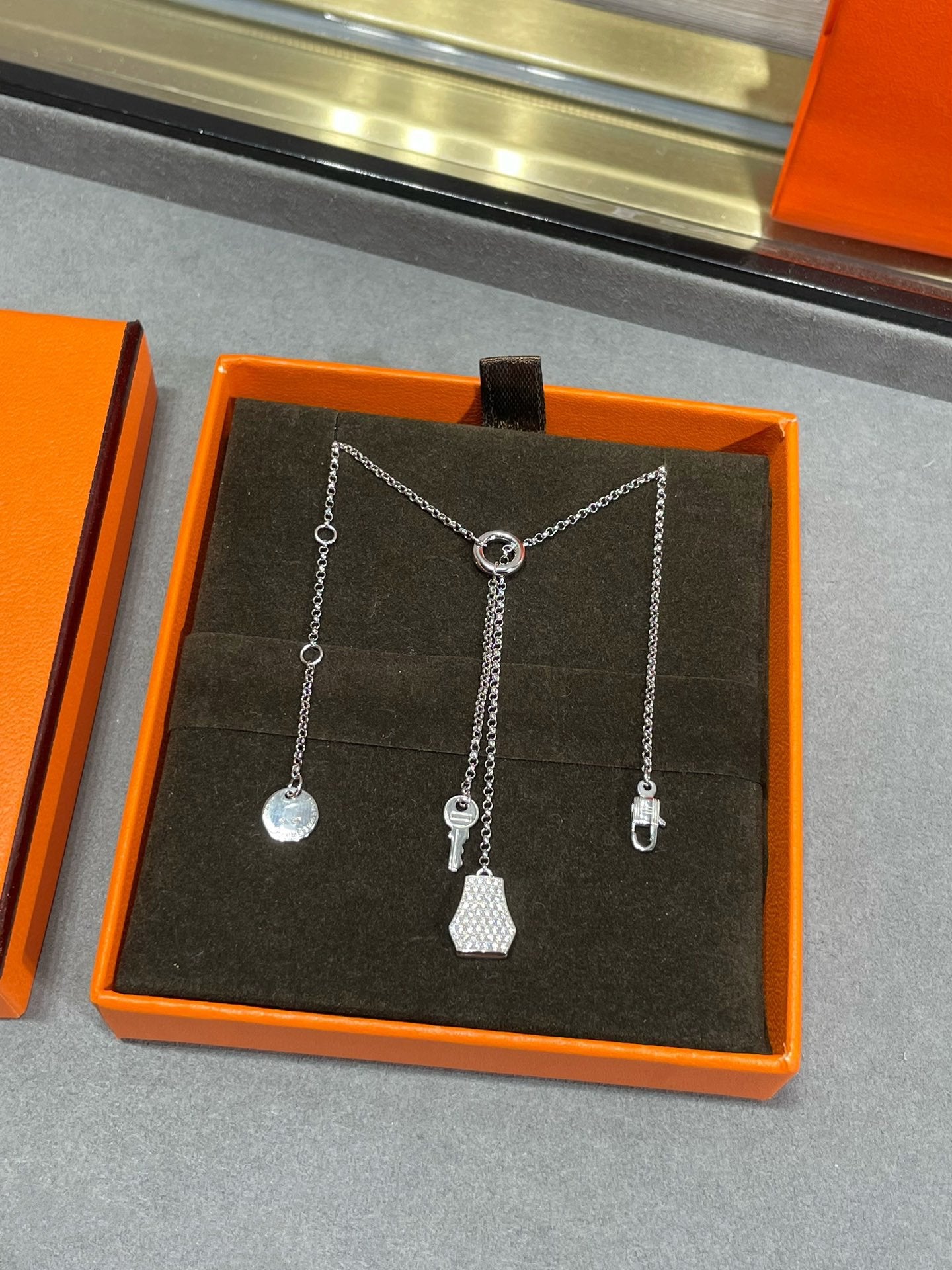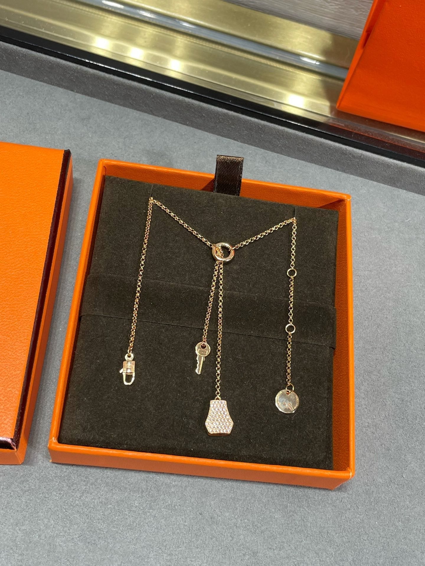V GOLD MATERIAL HM LOCK KEY NECKLACE